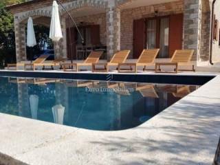 An Istrian villa with a heated swimming pool is for sale, located in a well-maintained residential area of villas built in a traditional style.