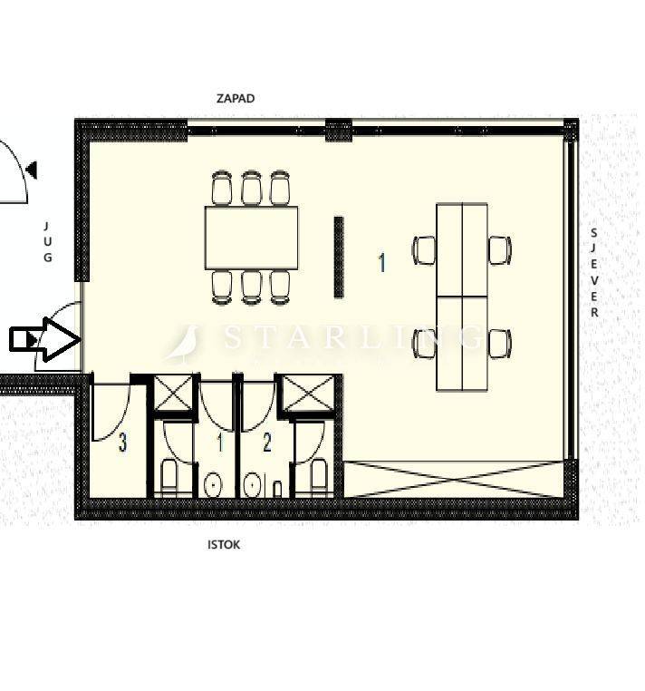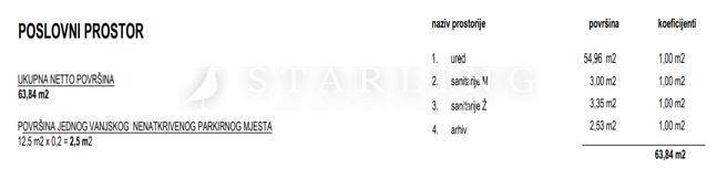Prostor se sastoji ureda, spremišta te muškog i ženskog WC-a.