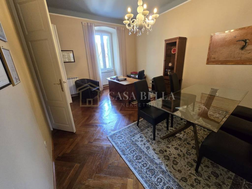 CASA BELLA NEKRETNINE iz ponude izdvaja opremljen uredski poslovni prostor površine 85 m², smješten na 1. katu u samom centru Grada Rijeke. Ova atraktivna lokacija osigurava neposrednu blizinu svih ključnih institucija, uključujući državnu, županijsku i gradsku upravu, sudove, Finu, banke i druge važne ustanove. Prostor je idealan za uredske djelatnosti.