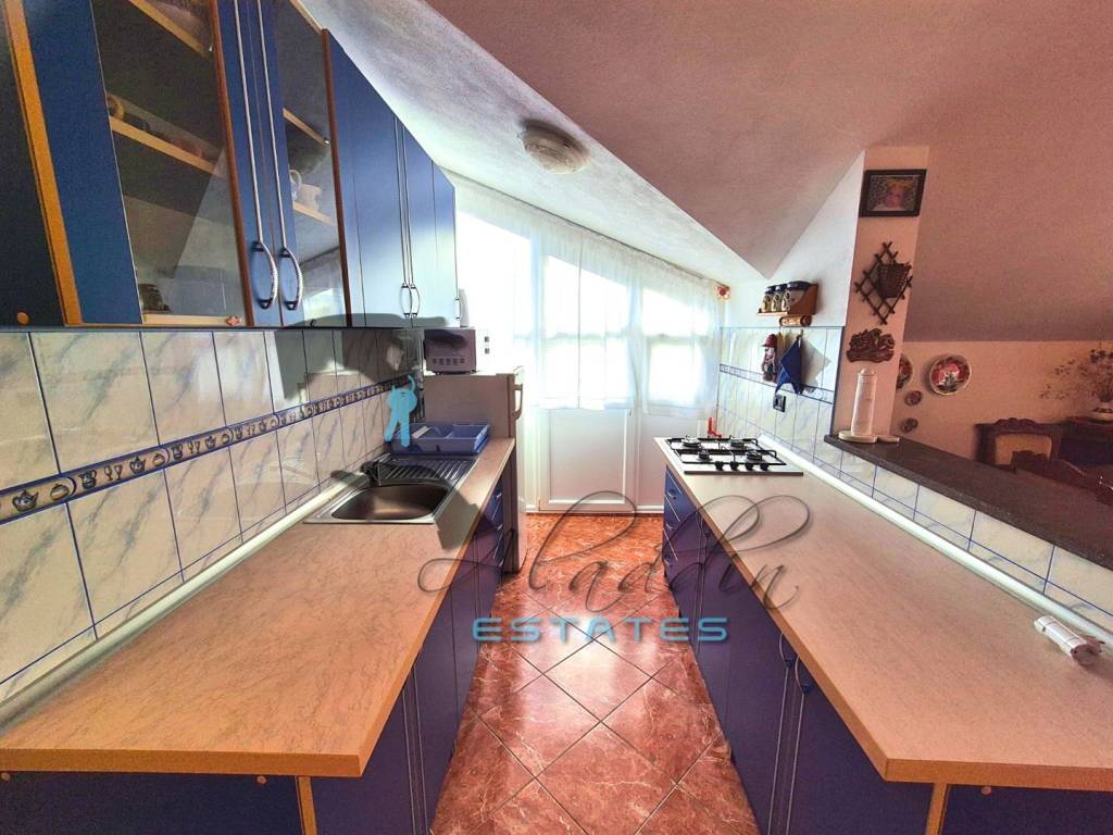 Vanjskim se stubištem stiže na prvi kat gdje se nalaze nalaze jedan poveći dvosobni i jedan jednosobni stan, svaki sa izlazom na komforne, djelomično natkrivene terase. Na drugom se katu prostire penthouse stan s dvjema raskošnim spavaćim sobama, golemim dnevnim boravkom sa zasebnom blagovaonicom i kuhinjom, hodnikom i kupaonicom. Svaka soba ima izlaz na