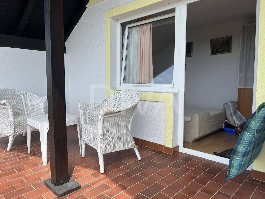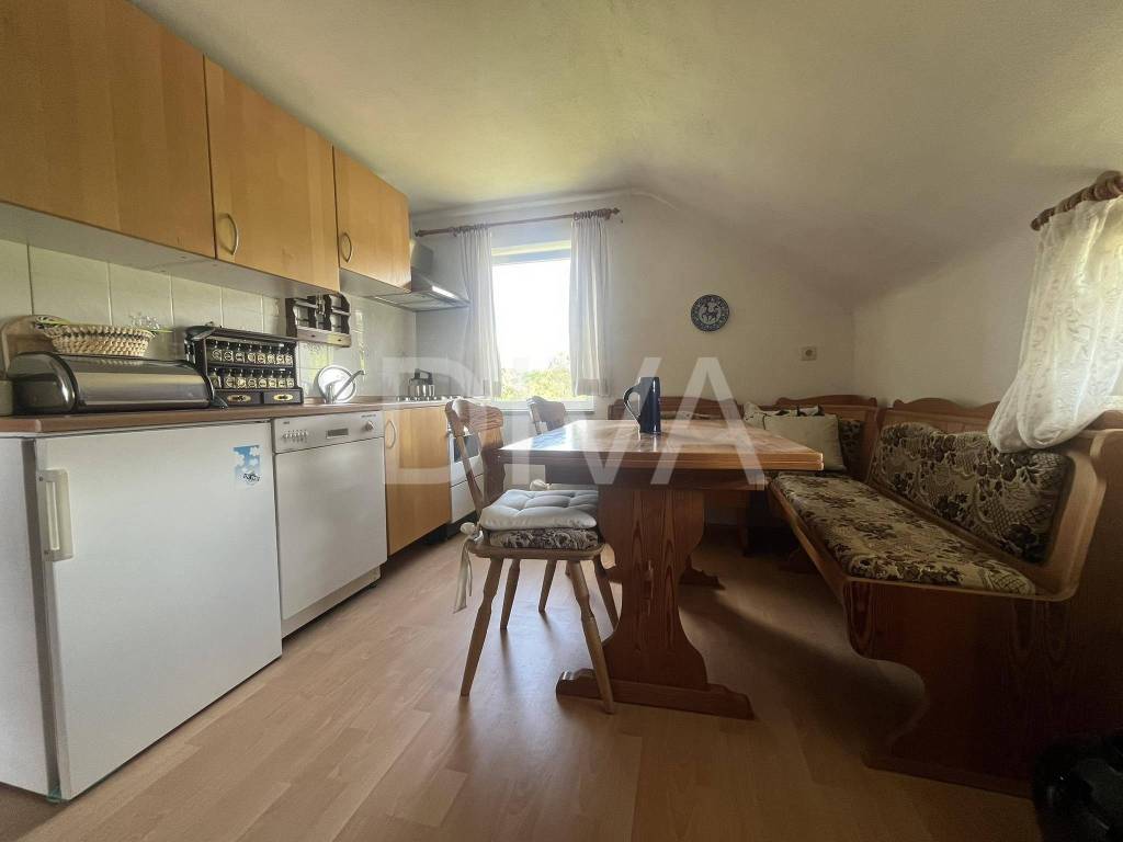 U potkrovlju kompletno uređen četverosoban stan koji se sastoji od boravka, kuhinje, 3 spavaće sobe, kupatila i balkona.