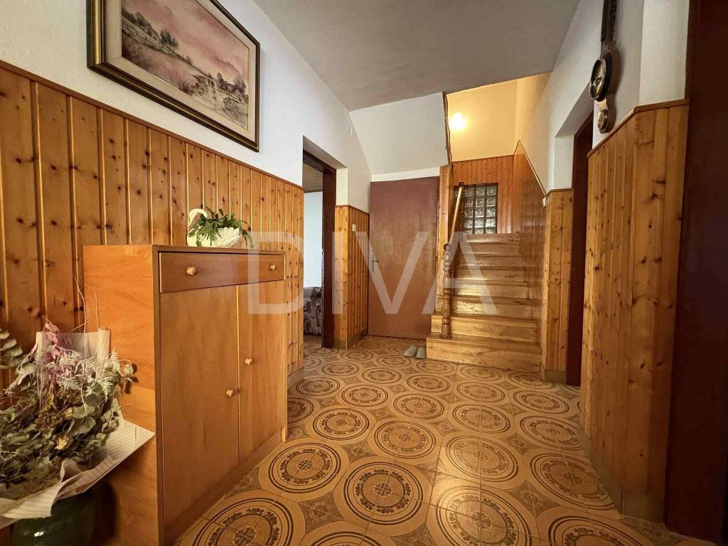 Na katu je postavljena PVC stolarija, krovi��te je uredno i odr��avano, a grijanje je trenutno na drva, iako je plin ve�� pla��en. Ku��a ima sve potrebne priklju��ke (struja, voda, plin, kanalizacija). U dvori��tu se nalazi pomo��na zgrada koja se sastoji od tri prostorije, a uz preure��enje mo��e slu��iti kao ljetna kuhinja ili dodatni hobi prostor.