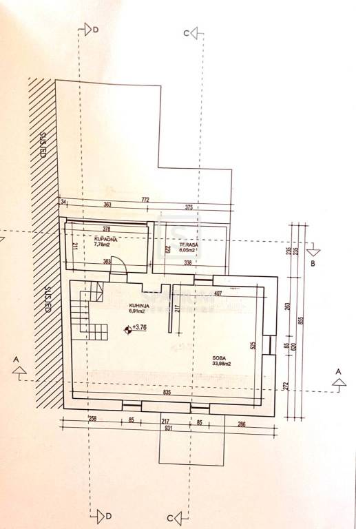 Renovation work has begun, including wall restoration and reprofiling, while the roof remains in good condition. Electrical and water installations have been completed, allowing the future owner to customize the space to their preferences.