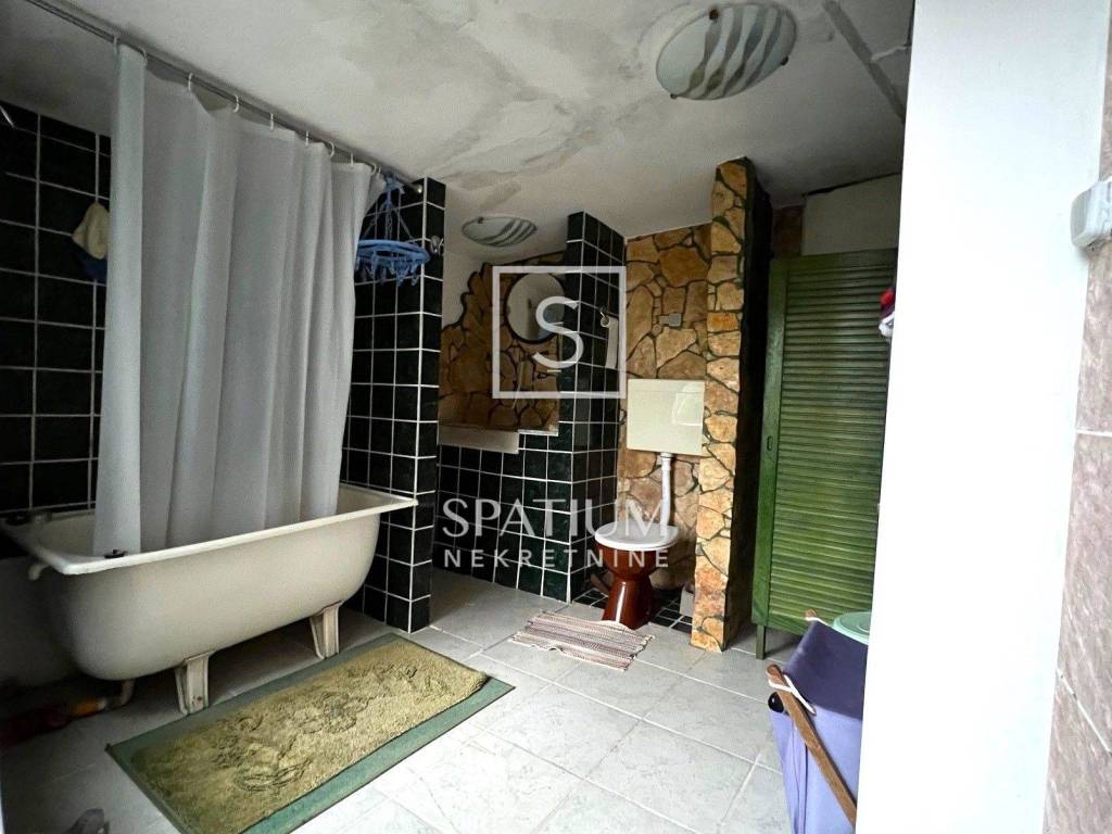 VEPRINAC, we were offered a house in an attractive location. It is located on a plot of 1437 m2 surrounded by greenery in a cul-de-sac. It is well connected to the expressway and all traffic routes. The house has a total area of 220 m2 and consists of a basement, ground floor and first floor. The basement consists of a terrace and four rooms. One room is a bathroom, and the others are arranged as guest rooms and a room for socializing. On the ground floor there is an apartment of 90 m2, which consists of an entrance hall, kitchen, bathroom, pantry, two bedrooms and a living room with a dining room. The living room and one bedroom lead to a covered balcony with a view. We climb the external staircase to the floor where the 90 m2 apartment is located. It consists of an entrance hall, a storage room, three bedrooms, a kitchen with a dining room and a living room. This apartment also has access to a balcony with a view that extends over the entire floor. In the fenced yard, there is also a storage room, a boiler room and an auxiliary building with an area of 20 m2, which serves as a studio.