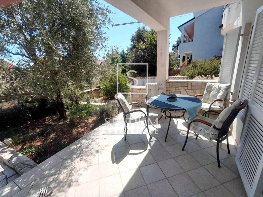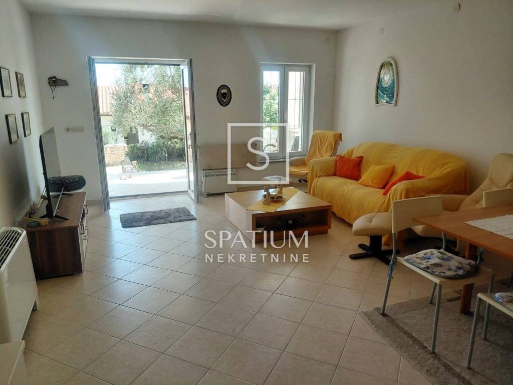 ISTRIA, MARČANA, For sale is an apartment in Duga Uvala, located on the ground floor, with a total area of 75 m2. This pleasant space consists of a spacious room, bathroom, open living room with kitchen and dining room, as well as a loggia, terrace and garden. It is perfect for relaxation or as a rental investment. The year of construction is 2012, and it is sold fully furnished. The heating is central electric, and the energy efficiency is class B. The apartment has an outdoor uncovered parking space, and thanks to its excellent location, the beach is only a 5-minute walk away.