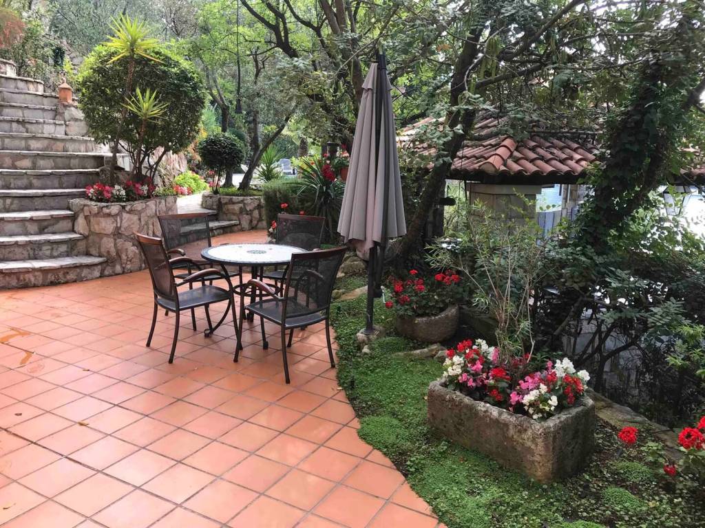 Okućnica je uređena s prekrasnim kamenim vrtovima, stepeništima i terasama u mediteranskom stilu s 40 stabala maslina, naranči, limuna, palmi i ostalih mediteranskih biljaka, te posađenom travom na ravnim površinama.