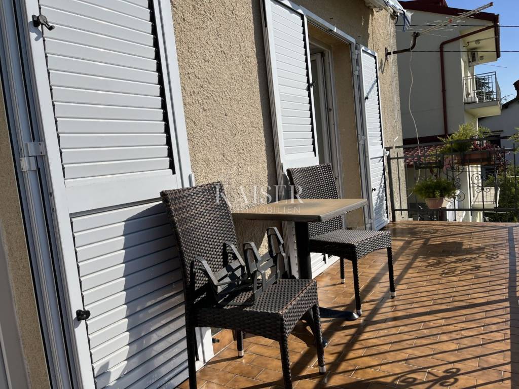 **Sale of a flat in Trsat - A perfect home for a family** The real estate agency *Kaiser Immobilien* is proud to offer for sale a beautiful flat located in one of the most sought-after locations in Rijeka - Trsat. Trsat is known for its history, attractive views of the Kvarner Bay and proximity to all necessary amenities. The peaceful surroundings with panoramic sea views make Trsat an ideal place for family life, while at the same time offering proximity to the city center. This functional apartment with an area of 120 m2 extends over two floors. On the first floor, through a sunny veranda of about 20 m2 we enter the property, where there is a smaller room that can be used as a storage room or even a small study. There is also a large custom-made built-in wardrobe. On one side of the veranda there is an exit to the garden with a barbecue, while on the other side we enter the interior of the apartment. On the south side of the apartment we have a living room and a bedroom with exits to the balcony from which there is a spectacular view of the Kvarner Bay. On this floor there is also a kitchen, bathroom and hallway. A beautiful wooden staircase leads to the upper floor, where there are four bedrooms and an additional bathroom. An additional advantage of this property is the 30 m2 studio apartment, which can be perfect for guests or as an additional source of income. Gas central heating has been installed throughout the lower part of the apartment, and the windows and exit door to the balcony are PVC, which provides good insulation and energy efficiency. Also, the roof was replaced about ten years ago, which guarantees long-term safety and quality. This apartment represents an excellent opportunity for those who want to enjoy a peaceful life on Trsat, with enough space for a family, but also all the necessary amenities in the immediate vicinity. For more information and to arrange a viewing, please feel free to contact us!