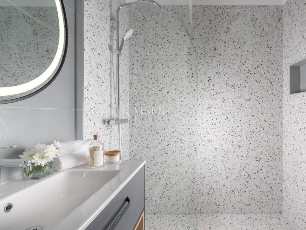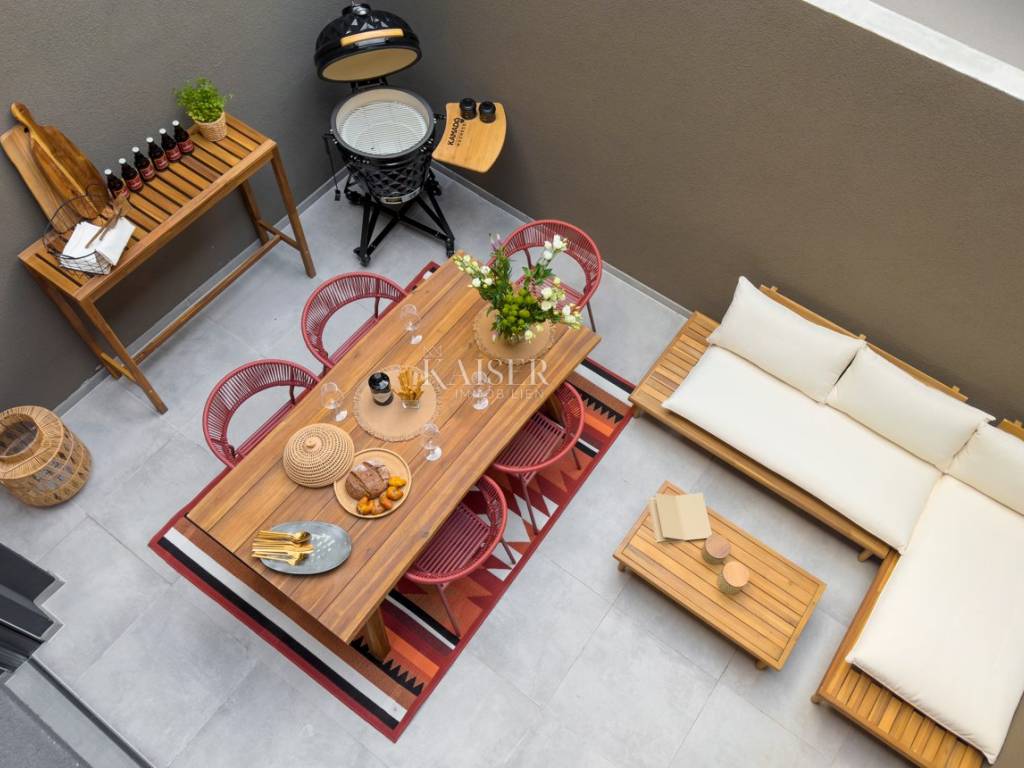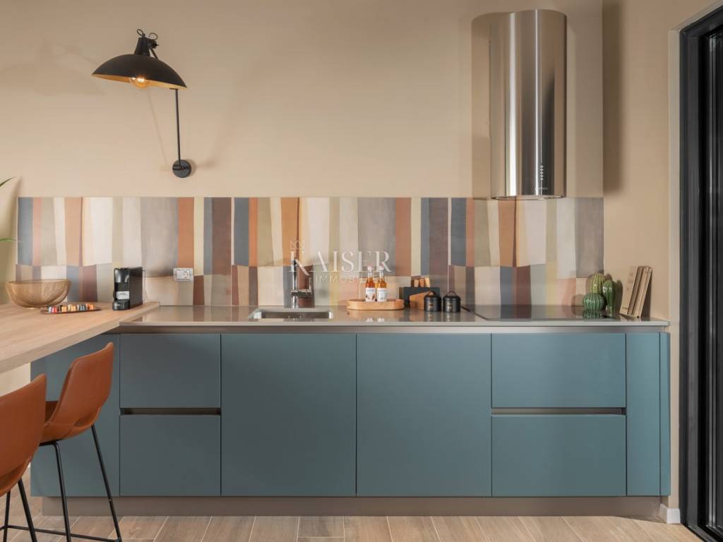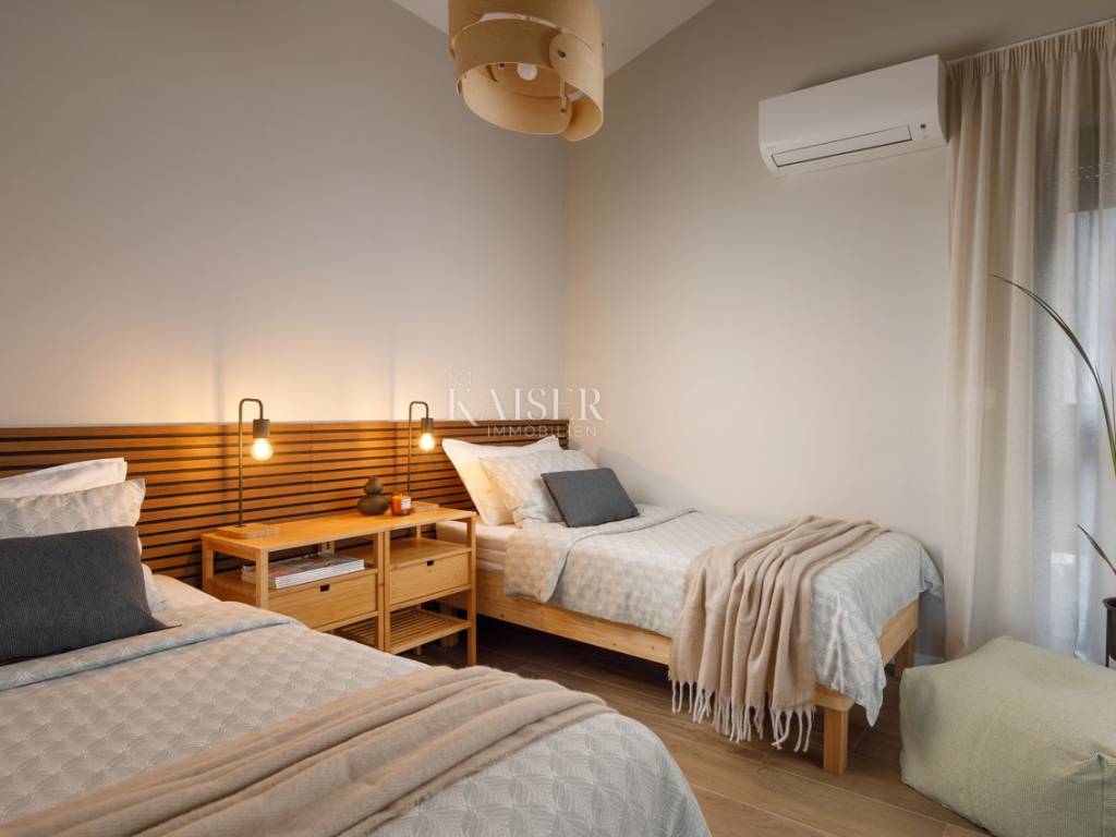 Kaiser Immobilien presents a modern, smart project of terraced houses with a sea view and only 950 m from the sea and 2 km from the center of Poreč. The house is located near all necessary facilities for life, in a great location with a great environment. The house is connected, in a row, but due to a good architectural project and excellent organization of space and privacy, the house has everything you need for your new, peaceful, pleasant life in a great location. The space of the house is designed very modern and contemporary on two floors. On the ground floor of the house there is a living room and a kitchen, a guest toilet and a staircase. Thanks to the modern architecture, the space of the house is very well organized with a lot of light coming through the glass walls and open space. Climbing the stairs where we reach the first floor of the house, we find two bedrooms that share one bathroom, a hallway and a modern gallery for relaxation. The house has its own garden, which extends in front and behind the house, also modernly decorated, measuring 43.41 square meters. The organization of the space is designed so that you can enjoy your complete privacy and perfect ambience. This modern and fully furnished house has two parking spaces. The house is heated with an air conditioning system. Distance of the property to the city: Poreč - Pula Airport, 45 km Poreč - Ljubljana, 162 km Poreč - Vienna, 544 km Poreč - Prague, 868 km Poreč - Munich, 565 km If you want this new, modern house to become your new home. , contact the agent at phone number 00385 923782803, or at the email address: ivana@kaiser-immobilien.hr. Agency commission is 3% + VAT.