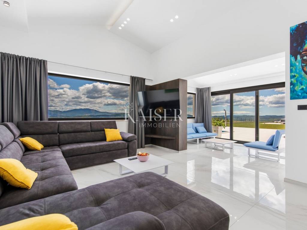 Kaiser Immobilien proudly presents a luxury villa with a unique panoramic view, located just a few minutes' drive from the heart of the picturesque Istrian town of Buzet.