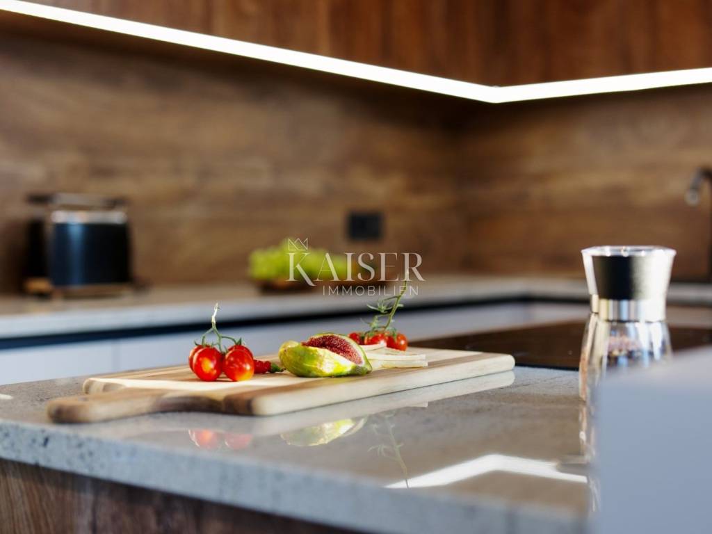 Marčana is a charming Istrian village located in the southeastern part of the peninsula, known for its untouched nature, peace and traditional Istrian ambience. Just a few kilometers from the Adriatic coast and the city of Pula, Marčana offers the perfect balance between relaxation and proximity to all important amenities. This area is ideal for lovers of nature, cycling, walks through pine forests and authentic Istrian gastronomy. Marčana offers excellent conditions for a peaceful family life, as well as an excellent opportunity for investment in tourism. Kaiser Immobilien presents this luxurious modern villa, located on a landscaped plot of 600 m², just a few minutes from the sea. This semi-detached villa with a total area of 200 m² was built in 2024 according to the highest construction standards and combines top quality, modern design and maximum comfort. It spreads over two floors and perfectly meets the needs of a modern lifestyle. On the ground floor there is a bright open-concept living room with large glass walls that provide direct access to a spacious terrace and swimming pool. The elegantly decorated kitchen with top-of-the-line appliances, including a wine cooler, dishwasher, oven, microwave and coffee maker, provides the ideal space for preparing gastronomic delights. The dining room and living room are equipped with modern furniture and a large TV, while the spacious terrace with an outdoor kitchen, barbecue and large aluminum pergola provides the perfect place for outdoor relaxation. The villa has four luxurious bedrooms, each with its own bathroom, TV and access to the balcony. All rooms are air-conditioned, and the bathrooms are equipped with modern sanitary facilities, shower cabins and hairdryers. In addition, the villa offers a private infrared sauna and a large jacuzzi located on the upper floor, ideal for complete enjoyment and relaxation. In the fully fenced and landscaped garden there is a 32 m² salt-water heated swimming pool with a waterfall, surrounded by a sunbathing area with deck chairs and large parasols. A children's playground is provided for children, and sports enthusiasts can enjoy table tennis. The villa has underfloor heating, three-layer PVC joinery, a 10 cm thick demit facade, a sewage connection and the most modern security systems, including a remote-controlled entrance, a video surveillance system and an electric car charger. For convenience, three parking spaces are provided, one of which is covered, and a WiFi network covers the entire property. The villa is categorized 4* for 8 guests and represents the perfect combination of a luxurious holiday and a top investment opportunity in one of the most sought-after locations in Istria. Proximity to amenities: Marčana, center - 100 m Sea/beach - 8.5 km Restaurant - 3 km Cafe - 400 m Shop - 400 m Pharmacy - 200 m Hairdresser - 200 m Bus station - 100 m Primary school - 400 m Gas station - 8 km Duga Uvala - 9 km Pula - 14 km Airport - 8.4 km Distance to major cities: Marčana - Ljubljana: 170 km Marčana - Vienna: 513 km Marčana - Budapest: 613 km Marčana - Prague: 730 km Marčana - Munich: 586 km Marčana - Zagreb: 260 km The agency commission for the buyer is 3% + VAT and is paid in the case of purchasing a property, upon conclusion of the first legal act. Interested buyers can view only with the prior signing of a real estate brokerage contract. ID-CODE: 127-106 If you would like to visit the property in person, please contact: Jennifer Hofmann E-mail: jennifer@kaiser-immobilien.hr Tel: +385-91-515-0887 http://kaiser-immobilien.hr/