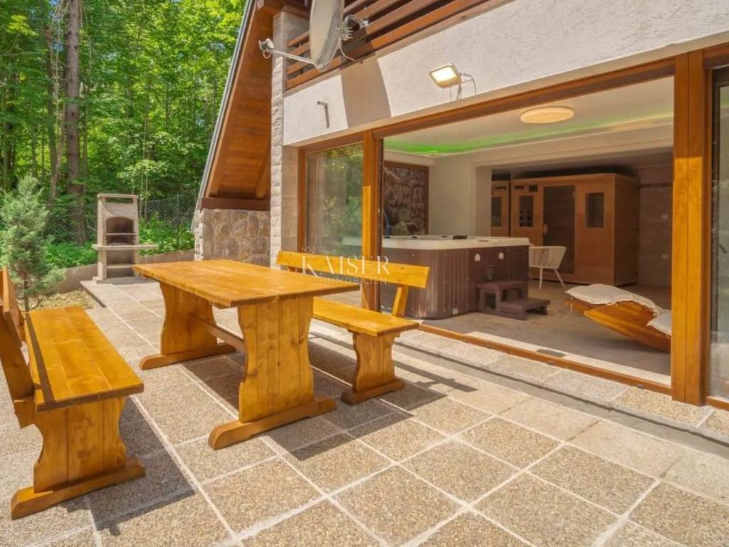 Kaiser Immobilien presents a beautiful holiday home in Lič near Fužine. Fužine is the most popular destination in Gorski Kotar, known for its lakes, promenades, and well-maintained bicycle paths. Excellent highway connections with Delnice 15 km, Rijeka 40 km. Distance to the sea 27 km. Therefore, this holiday home is an ideal opportunity for all lovers of a peaceful vacation, but also a good investment for tourist rental purposes. Nearby: lakes "Bajer", "Lepenica", "Omladinsko", "Lokvarka" cave, "Čelimbaša" toboggan run Mrkopalj, "Golubinjak" forest park, "Lič" train station, "Delnice" ice rink. Detached house with wellness and fenced garden in a quiet location of 110 m2 spread over 3 floors: ground floor, first floor and high attic. On the ground floor there is a wellness area: infrared sauna, hydromassage pool, deck chairs, and bathroom with shower / bidet / toilet. On the first floor there is a living room with a dining room of 25 m2, air conditioning, access to a covered terrace of 18 m2, kitchen, bathroom with bathtub / toilet. In the high attic there are two bedrooms with a sloping ceiling height of 100 - 260 cm. The house is being sold fully furnished and well-equipped. It generates income from tourist rentals throughout the year. In addition, it allows the owner to have a peaceful stay and relaxation, close to all important amenities that are accessible even without a car. Fužine: 4 km Sea (Crikvenica): 21 km Rijeka Airport: 37 km Rijeka: 40 km Zagreb, Ljubljana: 140 km Budapest, Vienna, Munich: 500 km The documentation is in order, possible purchase on credit. Purchase price of the property: EUR 300,000.00 Brokerage fee (3.75%): EUR 11,250.00 Total investment: EUR 311,250.00