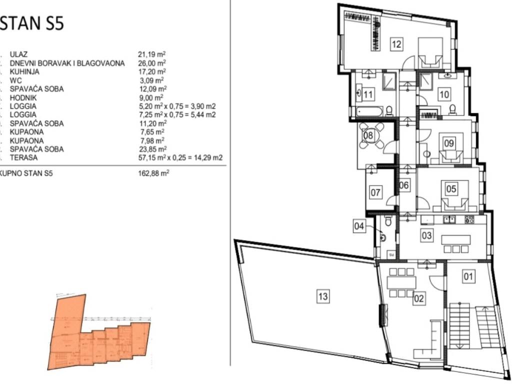 Prodaje se četverosoban stan na 3.katu nove stambene zgrade.