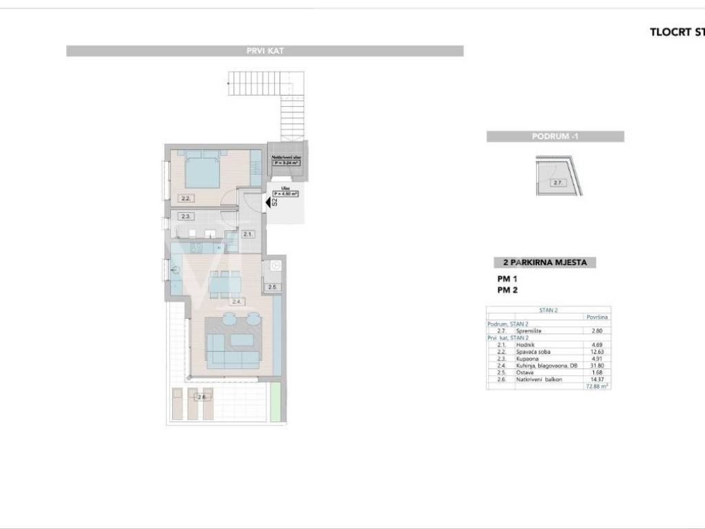 For sale: a modern apartment in a new development, located in an attractive location in the city of Krk, close to the sea and the city center.