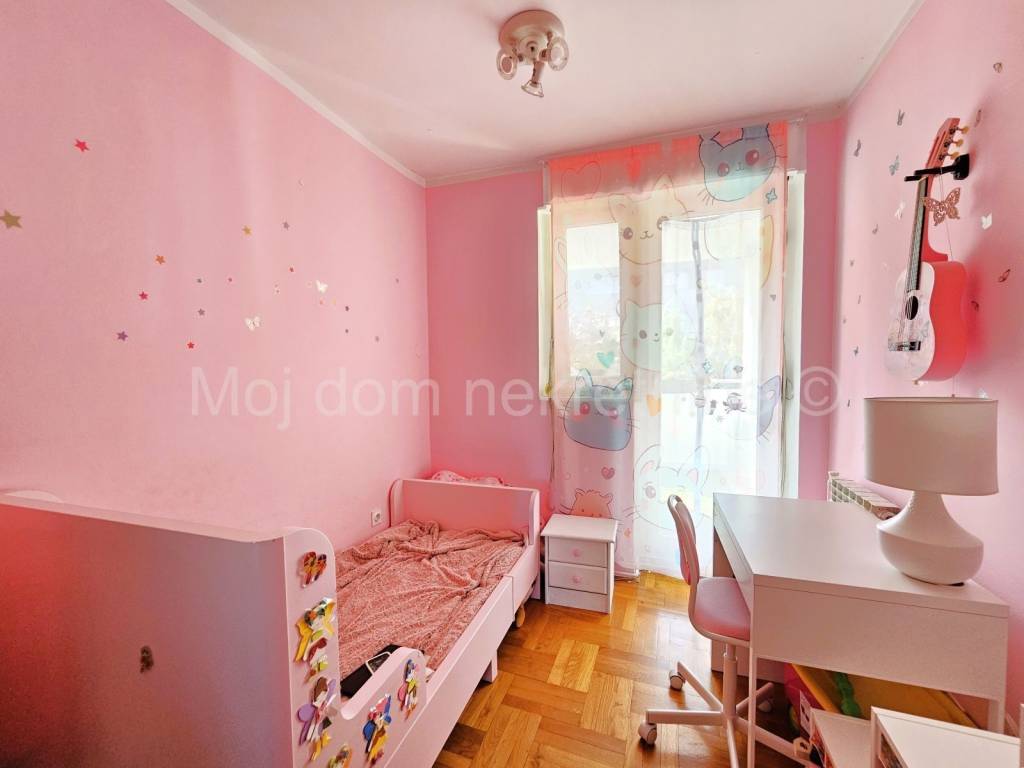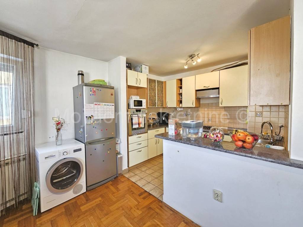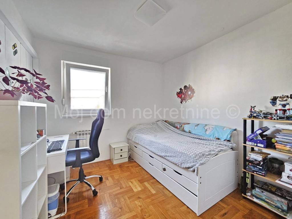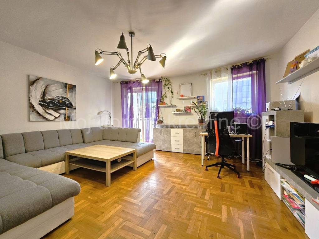 Prodaje se 4 soban stan s loggiom. Nalazi se na 3. katu od ukupno 5 katova zgrade s liftom. Izrazito svijetao zbog svoje trostrane orijentacije. Stan je opremljen klima uređajem, protuprovalnim vratima, video portafonom. Smješten je u blizini vrtića, škole, doma zdravlja, trgovine, tramvajske stanice te drugih bitnih sadržaja.