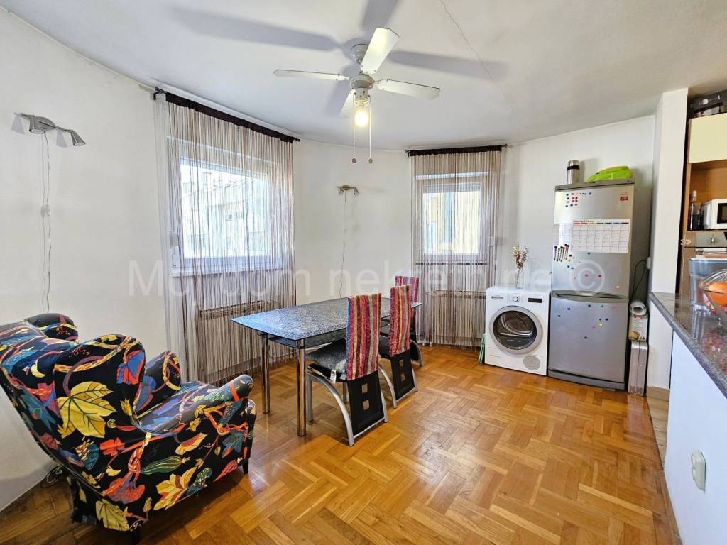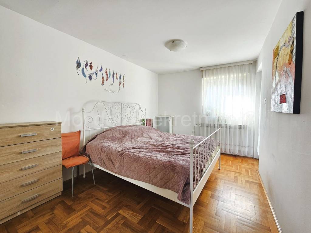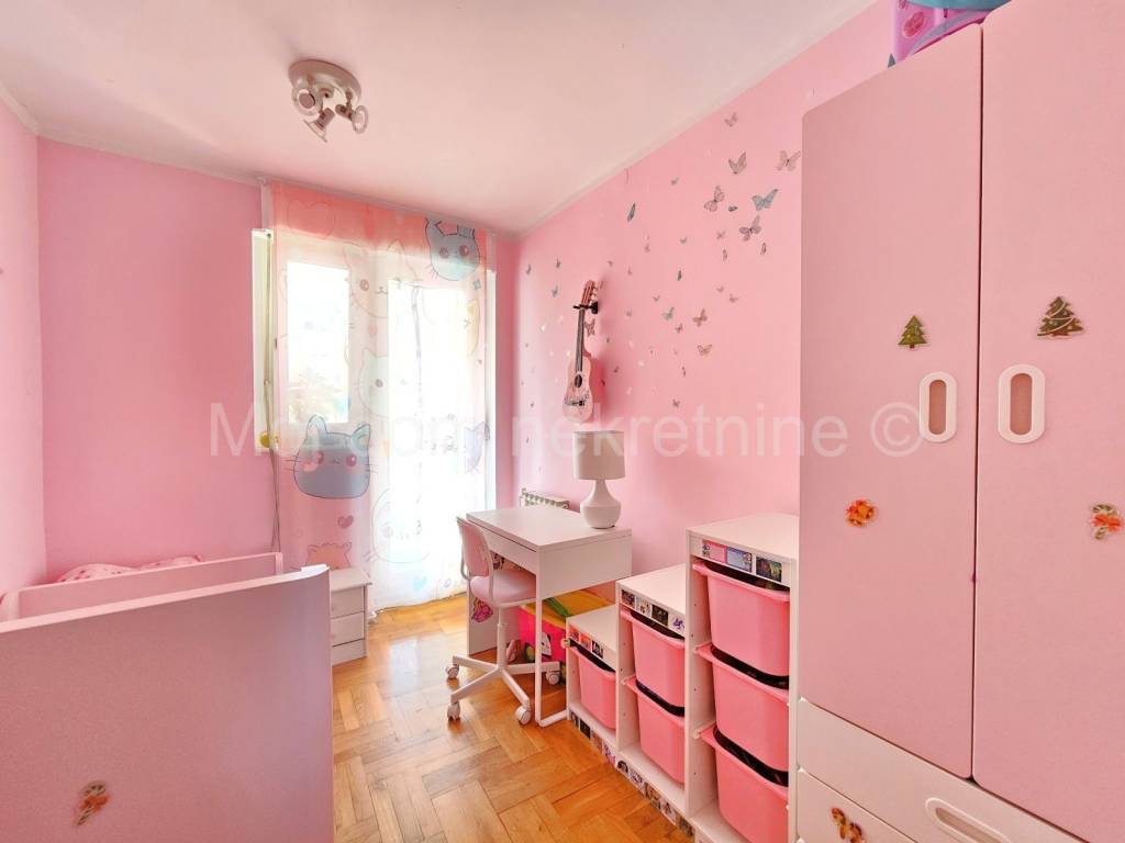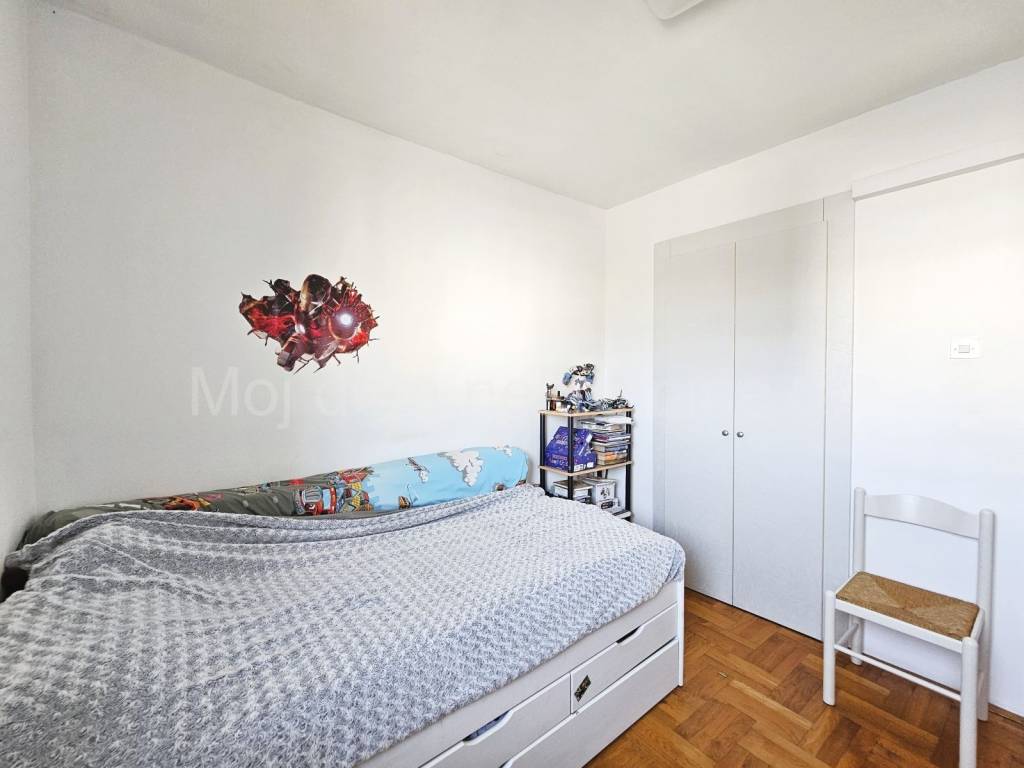 Prodaje se 4 soban stan s loggiom. Nalazi se na 3. katu od ukupno 5 katova zgrade s liftom. Izrazito svijetao zbog svoje trostrane orijentacije. Stan je opremljen klima uređajem, protuprovalnim vratima, video portafonom. Smješten je u blizini vrtića, škole, doma zdravlja, trgovine, tramvajske stanice te drugih bitnih sadržaja.