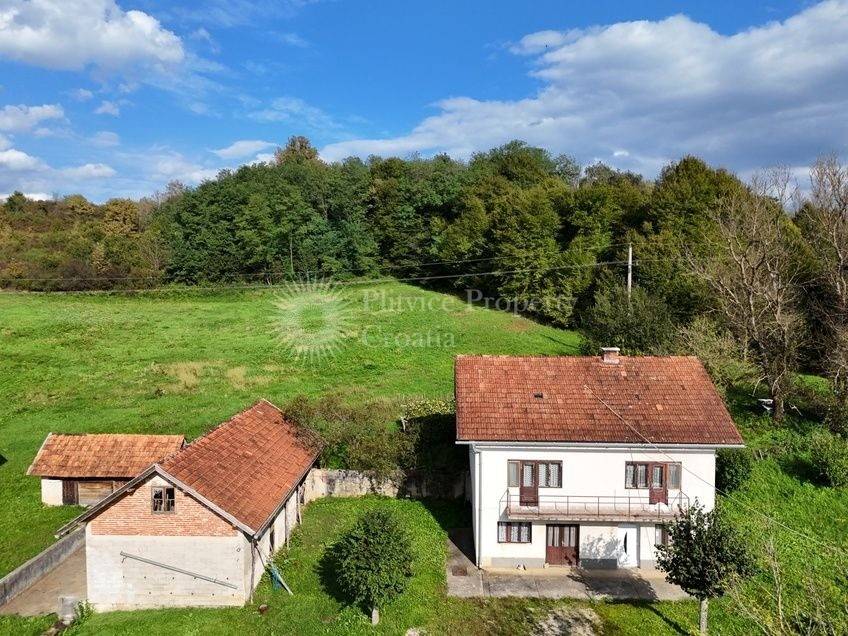 Explore the potential of this family home in a serene village near Krnjak. This property offers an excellent opportunity to create a personalized living space in a peaceful rural setting, while remaining easily accessible to nearby towns and essential amenities.