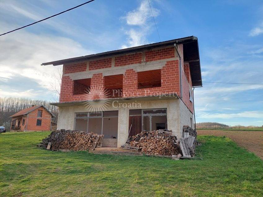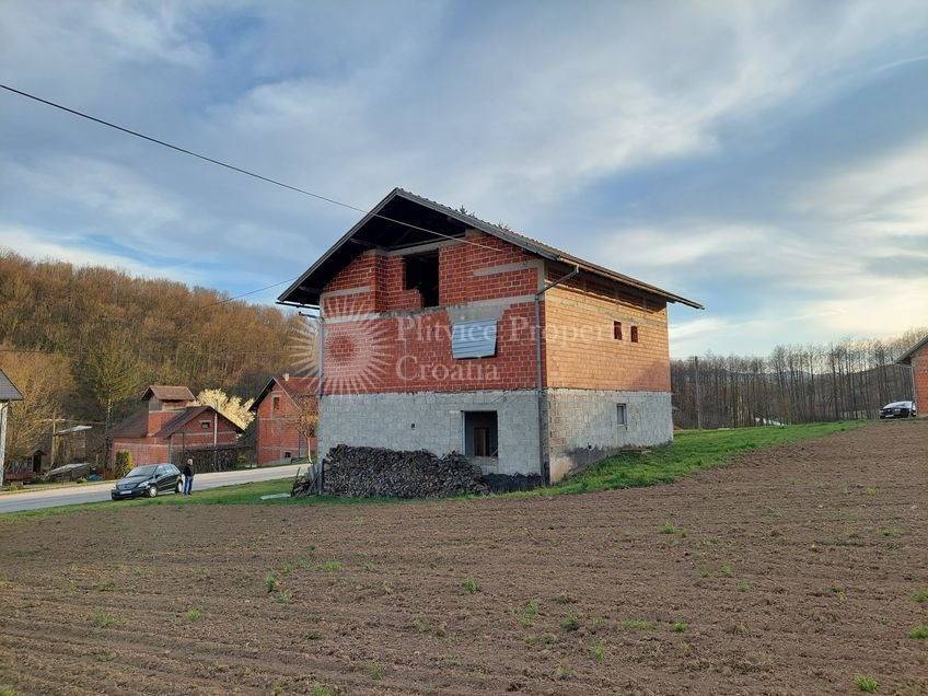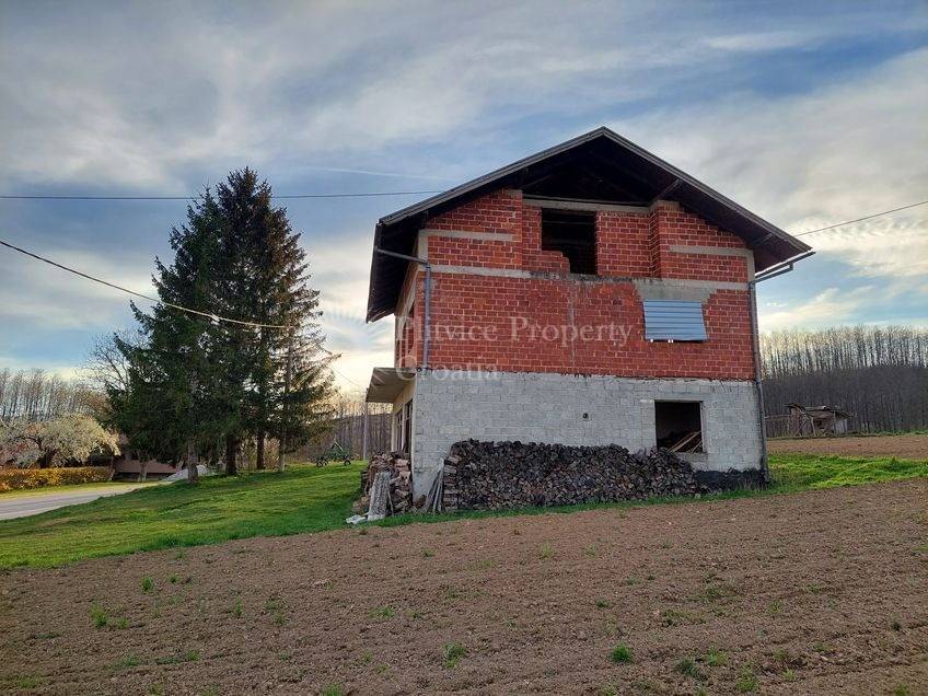 This spacious house is located in a peaceful and picturesque area near Cetingrad, in the heart of Croatia. The property sits on a large plot of land measuring 1809 m, which is within the building zone, providing plenty of space for further development or landscaping.