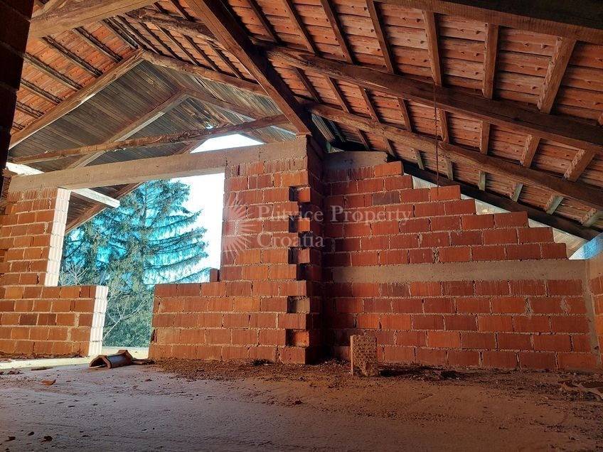 The house features 5 large rooms, offering ample living space for a family or as a holiday retreat. Currently, the house is unfinished and requires further work, including installing windows and interior finishes, allowing you to customize the space to your liking.