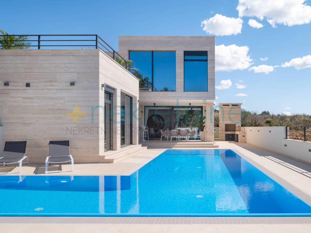 Ova moderna vila izgrađena je od vrhunskih materijala, uključujući talijanski travertin, prirodni kamen i keramičke pločice, a odlikuje se elementima od prirodnog drva i luksuznim vanjskim prostorima. Sadržaji uključuju podno grijanje u svim prostorijama, klimatizaciju, video nadzor, sustav za bežično upravljanje, grijani bazen, vanjski tuš, roštilj s ljetnom kuhinjom i još mnogo toga.