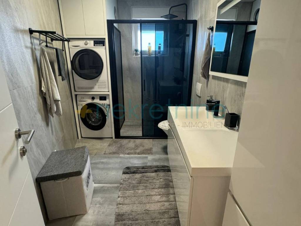 Orijentacija stana je istok-jugoistok, što osigurava dobru sunčanost i prekrasan pogled na more. Opremljen je podnim grijanjem, a svaka soba ima klima uređaj. Stan je pažljivo uređen s visokokvalitetnim materijalima i prodaje se potpuno namješten. Nalazi se na mirnoj lokaciji u blizini svih potrebnih sadržaja za udoban život.