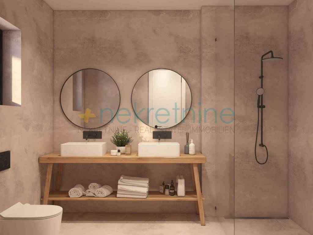 The villa was built in 2022 in a contemporary construction style, and it will delight you at first sight with its captivating exterior, and you will enjoy its interior like a king! It can accommodate a maximum of 8 people, consisting of a ground floor and an upper floor, which will be more than enough for you to spend your vacation in the best possible way.