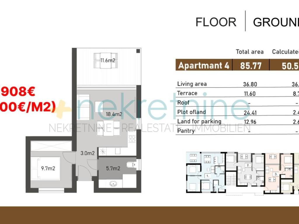 Ukupna neto prodajna površina iznosi 50,53 m, dok je bruto površina 85,77 m.
