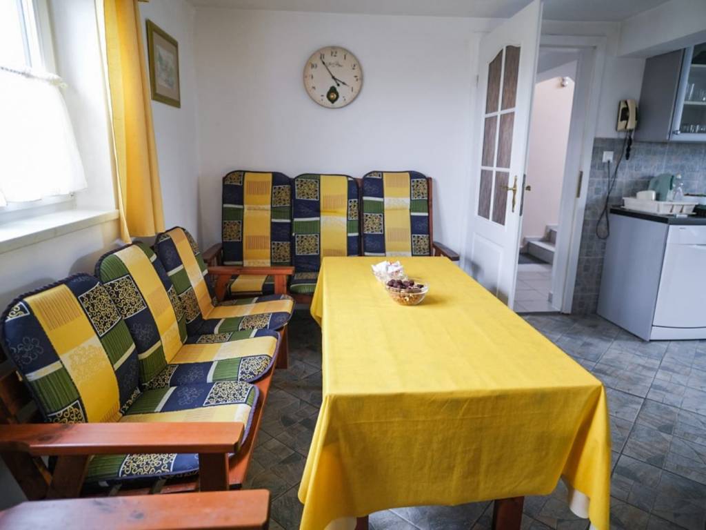 U prizemlju kuće smješteni su dnevni boravak, kuhinja i spavaća soba. Boravak ima izlaz na terasu i još jednu sobu s ulazom s terase. Kuhinja je potpuno namještena, ima ploču za kuhanje na plin bocu i veliku peć za grijanje i kuhanje na drvo. Na ulazu je kupaonica s tušem te stubište za kat i potkrovlje.
