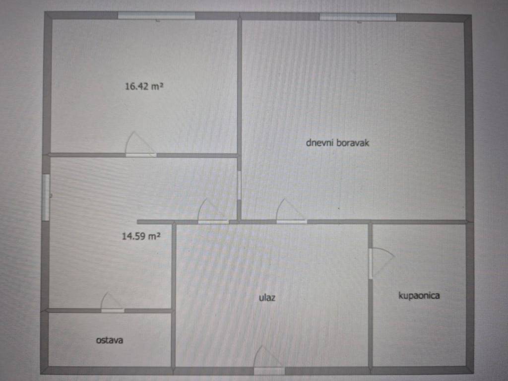 Stan ima dobar tlocrt i istočne je orijentacije. Površina mu iznosi 46m2 i odličnog je rasporeda s odvojenom kuhinjom i blagovaonom, a sastoji se od ulaznog hodnika, kuhinje i blagovaonice, dnevnog boravka, spavaće sobe, kupaonice i ostave u sklopu kuhinje. Tlocrt se nalazi u privitku.