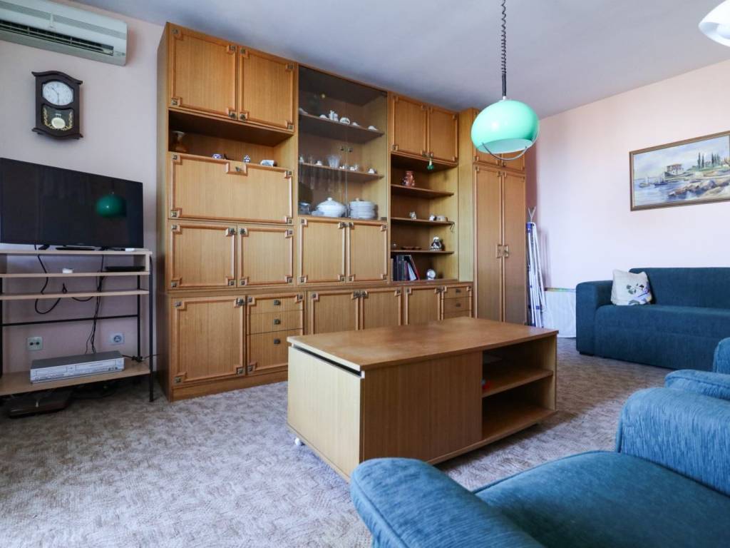 Stan se nalazi na 7. katu i u potpunosti je opremljen i namješten a sastoji se od ulaznog hodnika, kupaonice, spavaće sobe, kuhinje, dnevnog boravka i balkona. Stan je vrlo dobro očuvan, prostran i klimatiziran.