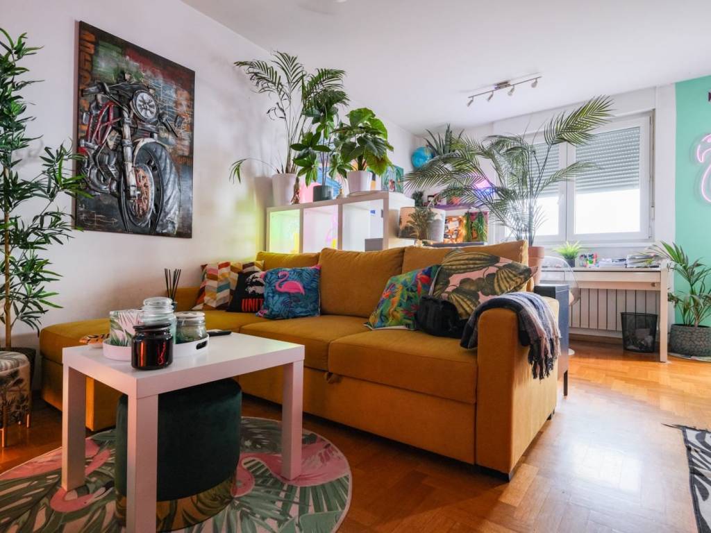 Mali, ali iznimno šarmantan stan, odiše osobnošću - šaren, pun biljaka i uređen s puno stila. Smješten je u popularnom zagrebačkom kvartu Vrbani, poznatom po odličnoj infrastrukturi, blizini jezera Jarun i izvrsnoj prometnoj povezanosti.