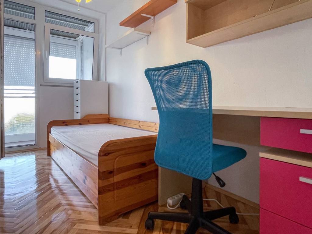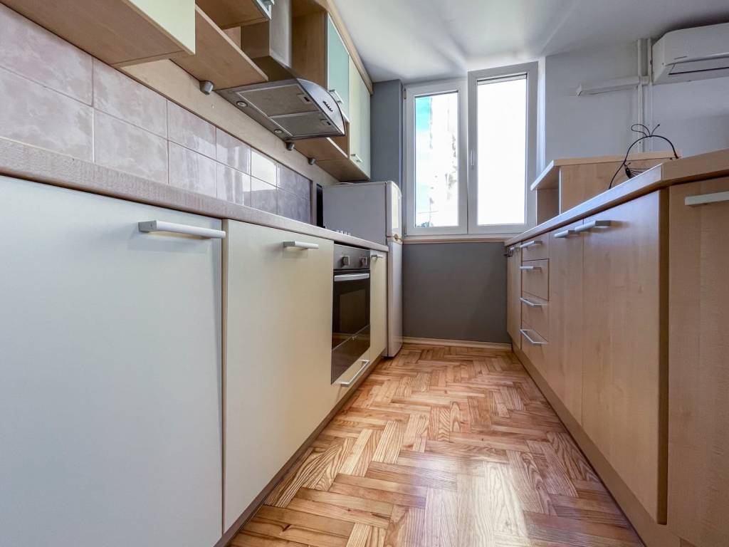 Namještaj u stanu je dobro očuvan. U stanu je ugrađena PVC stolarija, novo lakirani parket, protuprovalna vrata. Kuhinja je opremljena novom pećnicom na struju i indukcijskom pločom.