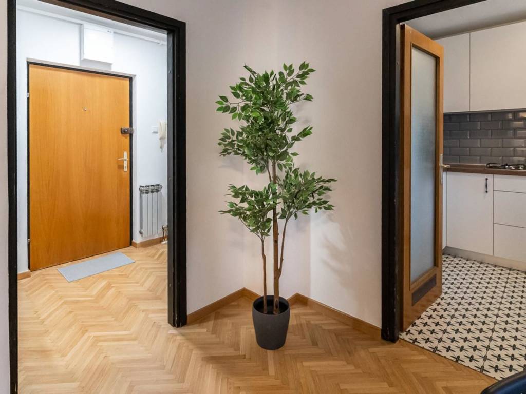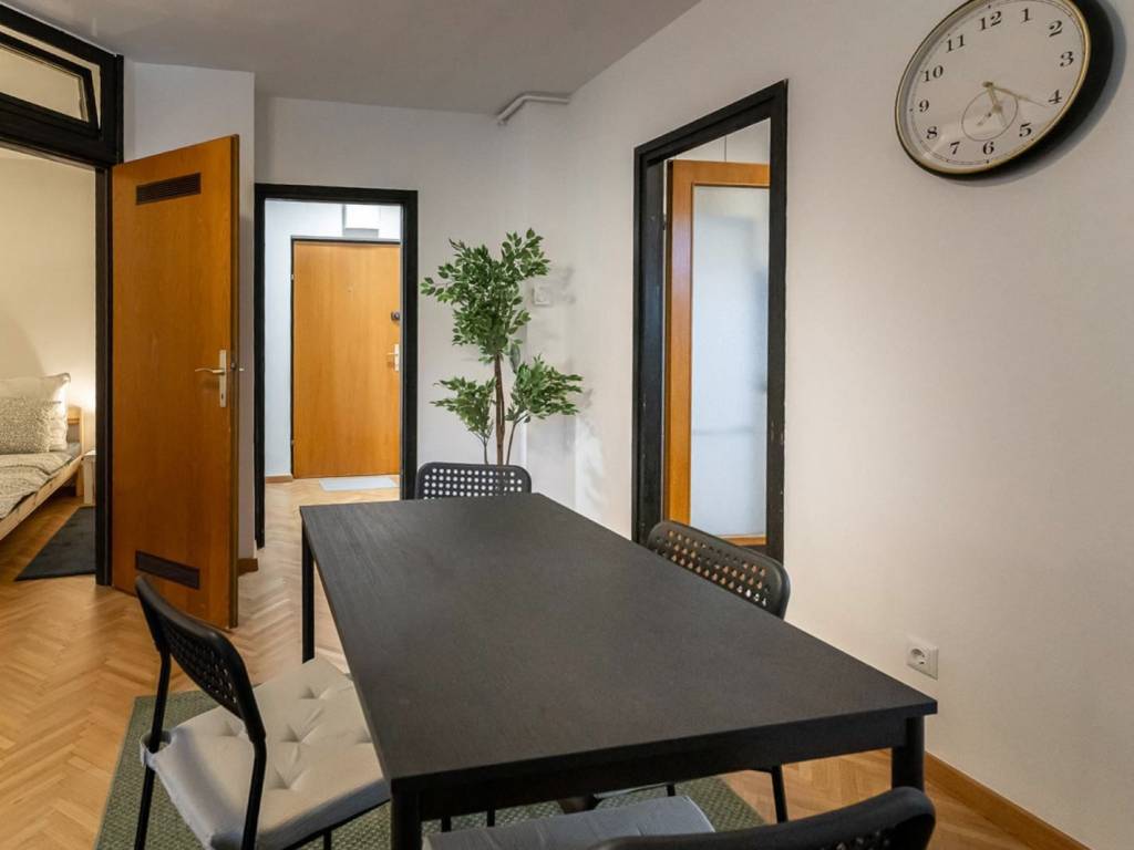 Lokacija: Stan se nalazi u mirnom i odlično povezanom dijelu Trešnjevke. U neposrednoj okolici su trgovine, Trešnjevački plac, parkovi i restorani, a tramvajske i autobusne linije omogućuju brz dolazak do centra i fakulteta. Posebna prednost za studente je blizina Studentskog centra (SC) sa restoranom, kantinom i ostalim studentskim sadržajima, što ovu lokaciju čini izuzetno praktičnom.