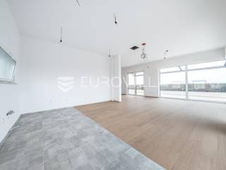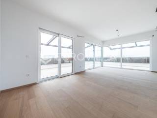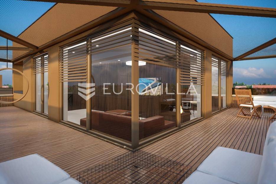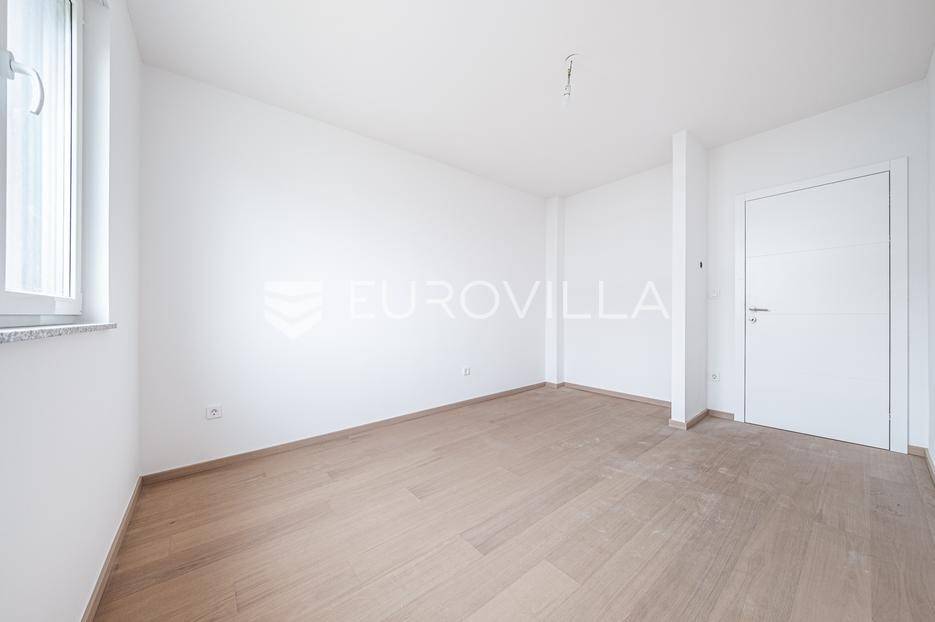 Velika Gorica, luksuzna novogradnja (2023) projektirana prema suvremenim standardima gradnje. Izuzetno mirna lokacija u neposrednoj blizini centra grada te svih potrebnih sadržaja za život.Četverosoban dvoetažan stan koji se prostire na drugom i trećem katu zgrade, zatvorene površine 123,62 m2.Donja etaža sastoji se od hodnika 11 m2, tri spavaće sobe (13 m2 / 9 m2 / 13 m2), kupaonice 4 m2 te lođe 4 m2.Gornja etaža (uvučeni kat) sastoji se od hall-a 8 m2, dnevnog boravka, blagovaonice i kuhinje 46 m2, stubišta 6 m2, kupaonice 4 m2, gospodarstva 5 m2 te nenatkrivene terase 61 m2. Sveukupne neto korisne površine stana 141 m2.Stanu pripada spremište 11 m2, garaža 17 m2, dva vanjska nenatkrivena parkirna mjesta 12 m2. Zajedno sa stanom NKP iznosi 160 m2.Oprema:Troslojna Alu stolarija, komarnici, kombinacija ručno-autmatskih roletaVentilirana fasada 15 cm mineralne vune debljine 12 cm + silikonska završna žbuka.Ograde stubišta moderno/željezneDizala stambene građevine proizvođača OtisKeramičke pločice su prvoklasne, visoke kategorije.Izvor topline za grijanje biti će dizalica topline zrak/voda, podno grijanje, svi stanovi klimatiziraniProjekt Velika Gorica sastojat će se od ukupno 8 stambenih jedinica, različitih kvadratura, podijeljenih u 2 ulaza. Na taj način budući stanari mogu računati na veću udobnost stanovanja, praktičnost i intimnost. Nalazi se u neposrednoj blizini osnovne škole Eugena Kumičića, osnovne škole Nikole Hribara, dječjeg vrtića, doma zdravlja Velika Gorica, Farmacije, Superkonzuma, Interspara i teretane.Ostale informacije na upit.