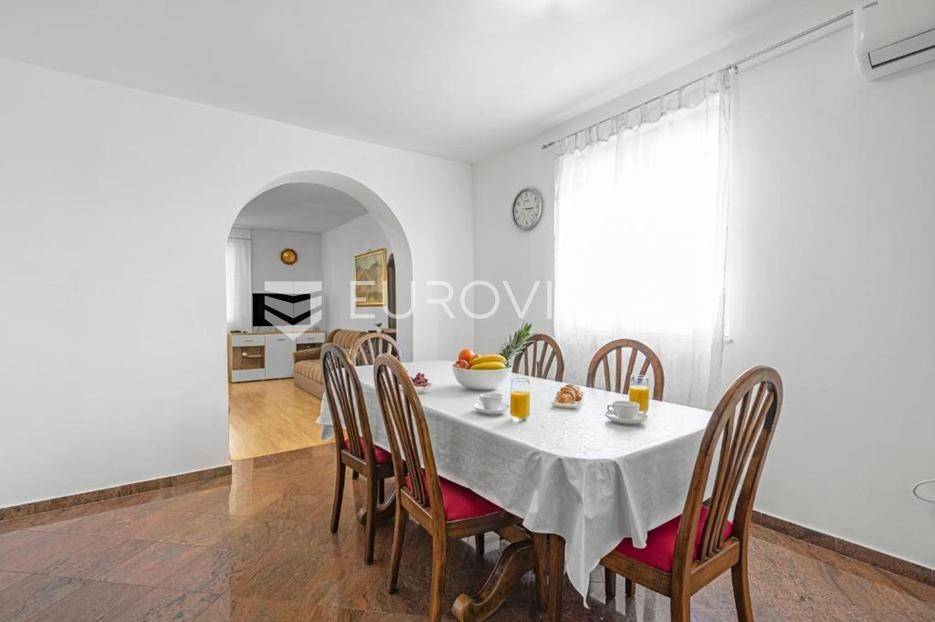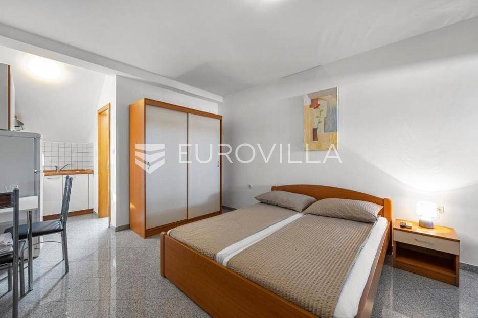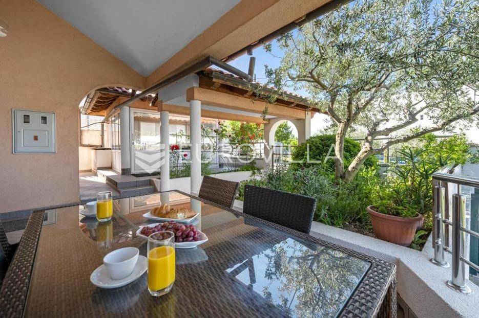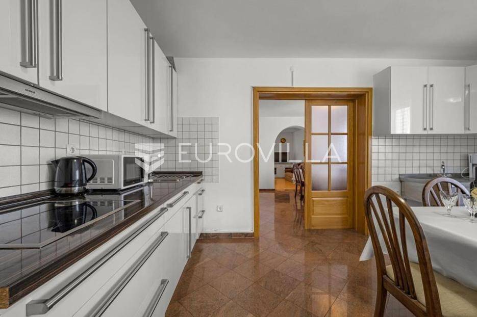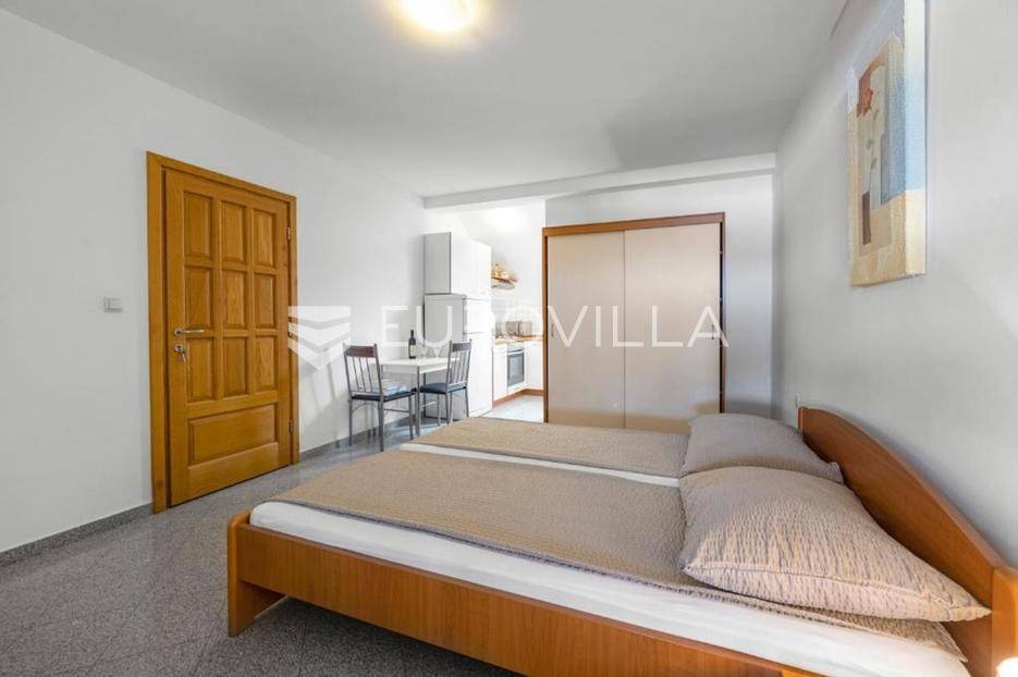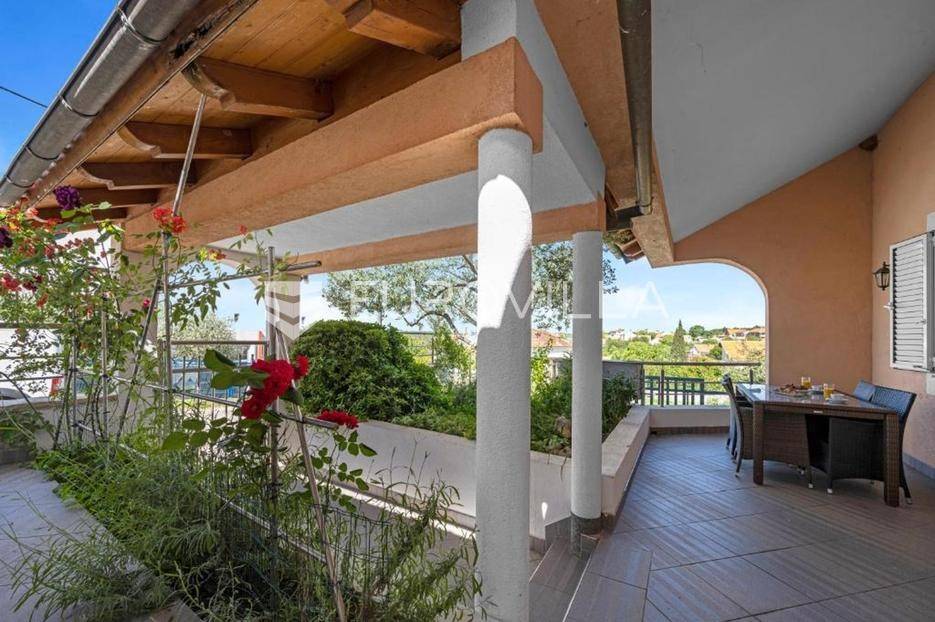Skradin, Dubravice, kuća sa 7 apartmana i velikim bazenom, izgrađena na parceli površine 2556 m². Okružena je velikim dvorištem i maslinikom. Prodaje se potpuno namještena i opremljena, spremna za odmor ili za nastavak uspješne djelatnosti najma.Kuća uz podrum ima i 3 stambene etaže na kojima se nalazi 5 apartmana s jednom spavaćom sobom, kupaonicom i dnevnim boravkom s kuhinjom. Uz te apartmane kuća i dva velika stana po 200 m². Jedan ima 3 spavaće sobe, dvije kupaonice i dnevni boravak s kuhinjom i blagovaonicom. Drugi ima 4 spavaće sobe, dvije kupaonice i dnevni boravak s kuhinjom i blagovaonicom. Na imanju je još i dodatni pomoćni objekt za smještaj osoblja, površine 50 m².Pokraj kuće se nalazi veliki bazen sa sunčalištem uz koji je vanjska kuhinja i stol za 20 ljudi. U dvorištu je još i prostor za opuštanje sa stolom za biljar. Kuća ima 10 natkrivenih parkirnim mjesta.Kuća se nalazi na odličnoj lokaciji, u blizini Skradina i Nacionalnog parka Krka.Za sve ostale informacije stojimo vam na raspolaganju.
