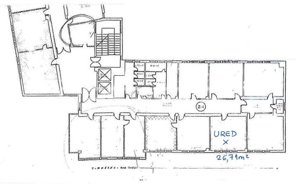Iznajmljuje se ured površine 26,71 m2 na 1. katu poslovne zgrade u samom centru grada uz predivan park Vatroslava Jagića.