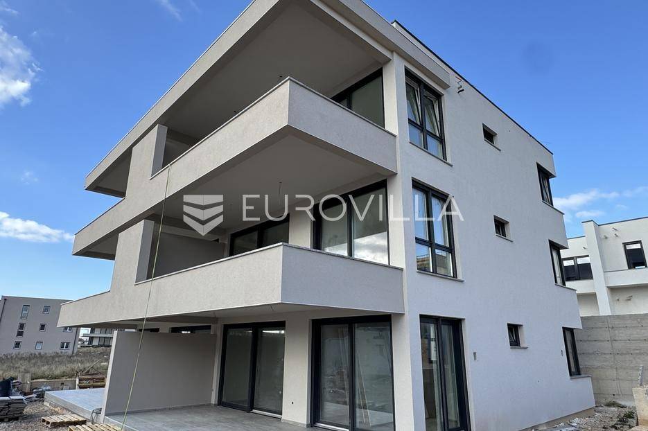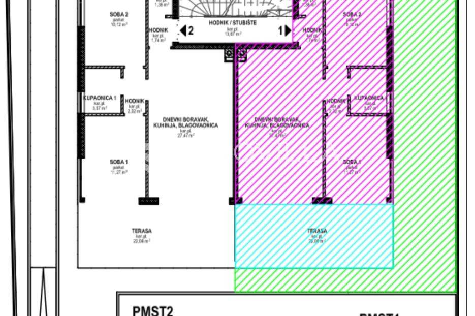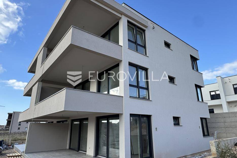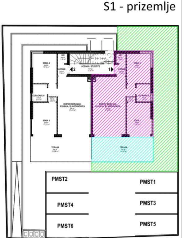 Predstavljamo vam projekt moderne novogradnje u novoizgrađenom dijelu Povljane na otoku Pagu. Zgrada se sastoji od ukupno 6 stambenih jedinica raspoređenih na 3 etaže. Udaljena je svega 300 metara od mora, lokalnih plaža i ostalih sadržaja potrebnih za kvalitetan život ili odmor.Stan S1 / 75,91m2 / PrizemljeStan S1 se nalazi u prizemlju zgrade te je ukupne neto korisne površine 75,91m2. Sastoji se od otvorenog prostora kuhinje, blagavonice i dnevnog boravka (27,47m2), hodnika (4,06m2), spavaće sobe 1 (11,27m2), spavaće sobe 2 (10,12m2), kupaonice (3,57m2), WC-a (1,38m2) te natkrivene terase (22,08m2). Stanu uz to pripada i prostran vrt (70m2) i vanjsko parkirno mjesto.Zgrada je građena i opremana kvalitetnim materijalima i opremom od čega valja izdvojitiMultisplit sustav klima marke Gree u svim spavaćim sobama i dnevnim boravcima, podno grijanje u kupaonicamaVrhunska troslojna low-E vanjska PVC stolarija s električnim aluminijskim roletama i komarnicimaProtuprovalna i protupožarna vrataVanjska izolacija od mineralne vune (10cm)Parkirna mjesta s priključkom za strujuI još mnogo togaPDV je uključen u cijenu te kupac ne plaća porez na promet nekretninama!Očekivano useljenje je 03/2026. Zgrada je trenutno u fazi završnih radova.Povljana na otoku Pagu je idilično ribarsko mjesto koje osigurava autentično iskustvo dalmatinskog načina života. Prostrane plaže i bistrano more čine je omiljenom destinacijom za opuštanje i uživanje u prirodi. Mjesto odiše šarmom, s bogatom poviješću, kulturnim događajima i ukusnom lokalnom gastronomijom koja zadovoljava sve posjetitelje. Obratite nam se za više informacija te za dogovor o razgledavanju nekretnine.