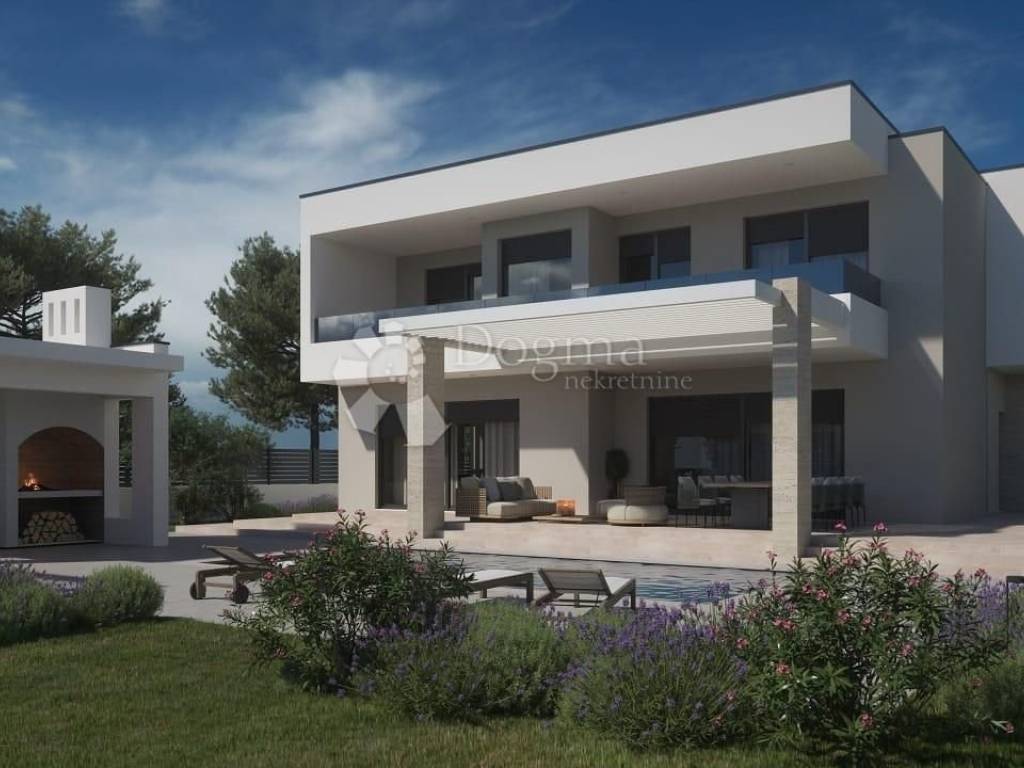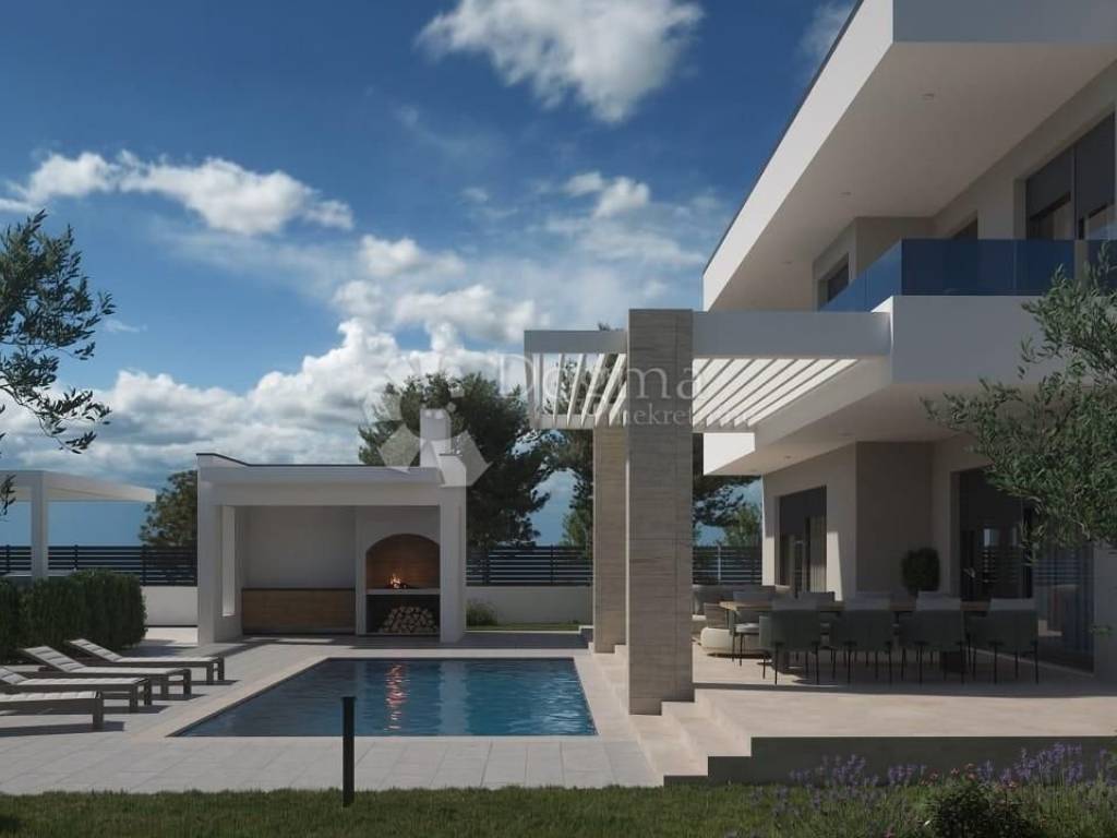 FOR SALE – LUXURY VILLA WITH POOL NEAR KRKA NATIONAL PARK A luxury villa with a swimming pool and an auxiliary building is for sale in the immediate vicinity of the Krka National Park. The villa is currently under construction, and the planned completion of works and move-in are scheduled for September 1, 2025. The villa consists of two floors and has a total net living area of 238 m². It is spatially designed to provide maximum comfort and functionality and consists of four bedrooms, three bathrooms, a separate toilet, a wardrobe and a spacious living area with a kitchen and dining room. The outdoor area includes a swimming pool with a sundeck, a covered terrace and a landscaped courtyard. The construction is carried out using high-quality materials according to the latest standards. Among the equipment we highlight: Joinery: – ALU Schuco AWS 75 entrance door, double-sided hidden leaf, security electric lock and code book – PVC Gealan lift-and-slide walls – Gealan S 9000 windows – Roller shutters with electric motors – Triple-layer glass and mosquito nets Heating and cooling: – Water underfloor heating – Built-in wood-burning fireplace – Air conditioning in all rooms – Preparation for a solar power plant on the roof Security: – Video surveillance Floor coverings: – Ceramics in living rooms, hallways, bathrooms and on the staircase (stone) – Three-layer parquet in the bedrooms Facade and exterior: – STO brand facade, 10 cm thick – Ceramic coverings on terraces and sundecks – ALU pergola above the pool area – Summer kitchen with barbecue – Covered parking – ALU fence on the surrounding walls, sliding patio door with electric motor Room layout: Ground floor (125.66 m²): Entrance, hallway, living room, kitchen and dining room, bedroom, bathroom, staircase, exit to the terrace with swimming pool and courtyard. On the ground floor there is also an auxiliary building with an area of 11.31 m², while the swimming pool has dimensions of 7.75 × 4 m (30.22 m²). First floor (111.99 m²): Three bedrooms, two bathrooms, wardrobe, hallway, staircase, balcony and loggia. The villa has secured space for five parking spaces. The distance from the sea and the nearest beach is approximately 5 km as the crow flies. Price: €745,000.00 For all additional information and to arrange a viewing date, please feel free to contact us.  ID CODE: DA100066242  Ante Goleš Agent s licencom Mob: 099/222-3054 Tel: 022/646-360, 022/646-361 E-mail: ante.goles@dogma-nekretnine.com www.dogma-dalmacija.com