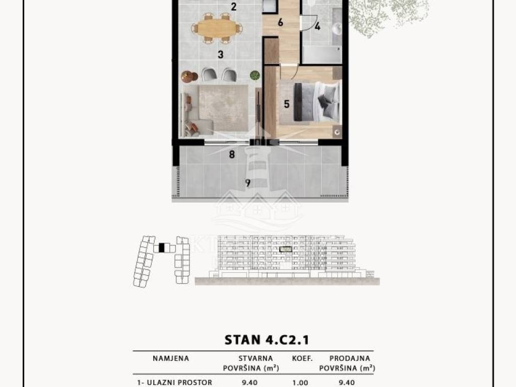 APARTMENT 4.A1.1|57.02m2|2-bedroom |4,100.00 €/m² | € 233,782.00
