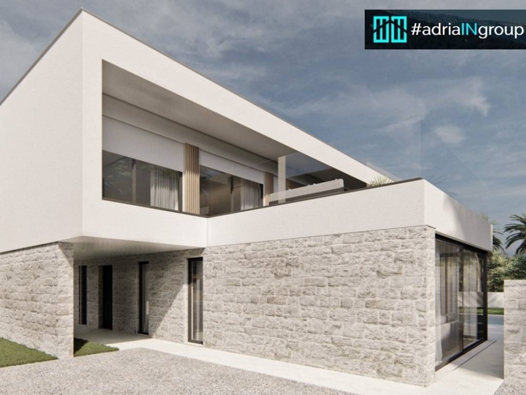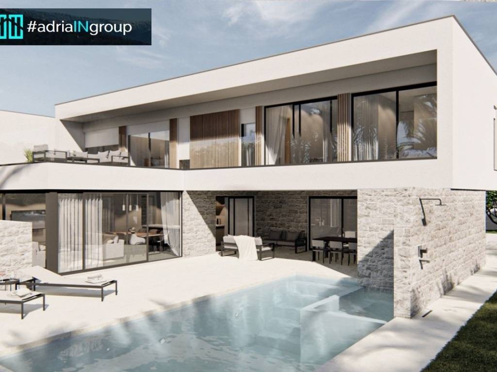 Predstavljamo ekskluzivnu modernu vilu u izgradnji, smještenu u mirnom dijelu Kaštel Staroga, na udaljenosti od oko 1000 metara od mora i plaža. Ova luksuzna rezidencija spaja suvremeni dizajn, mediteransku eleganciju i vrhunsku funkcionalnost, pružajući savršen dom za obiteljski život ili investiciju u premium nekretninu na jadranskoj obali.