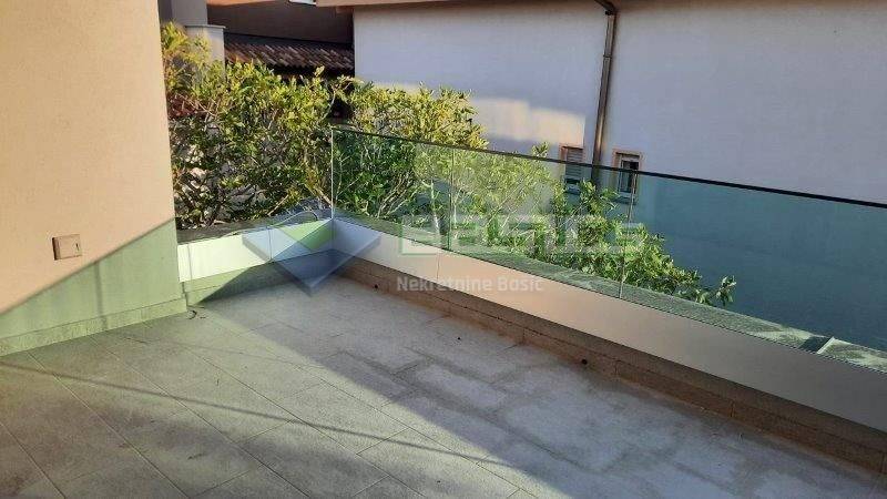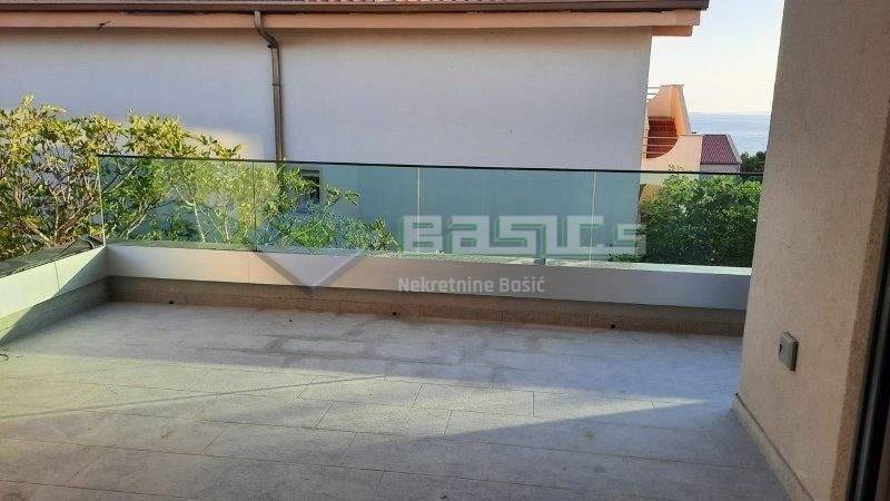 U ovom lijepom turističkom mjestu na otoku Pagu prodajemo stan na prvom katu ukupne površine 146,71 m2, (od toga je stambenog dijela 136,19 m2) koji je smješten na prvom katu stambene zgrade. Sastoji se od blagovaone, dnevnog boravka i kuhinje, tri sobe, dva predsoblja, dvije kupaonice, WC-a ostave, dva balkona te dviju terasa. Stanu pripada spremište i dva parkirna mjesta. Iz stana se izlazi na veliku i lijepu terasu sa pogledom na more, a svojom površinom terasa je dovoljna da bude i produženi dnevni boravak i blagovaona. Stan je opremljen klimom koja ugodno hladi za vrijeme ljetnih vrućina, a može i u zimskim mjesecima omogućiti boravak jer se putem klime može i grijati prostor.