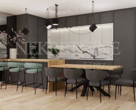 Stan se sastoji od: DB sa kuhinjom i blagovaonom, hodnika, kupaone, WC-a, ostave, 3 spavaće sobe, terase.