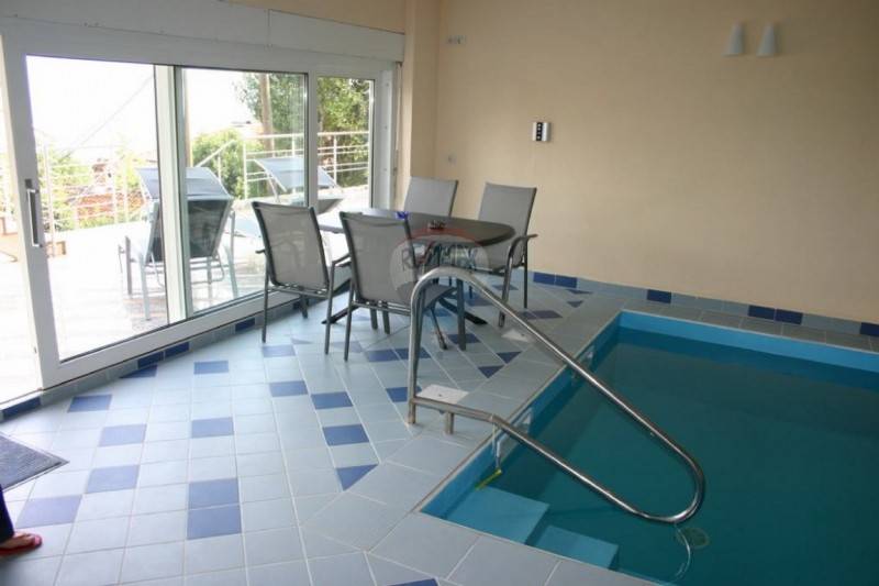 Beside the pool is a shower and toilet. In the basement is located boiler and storage.