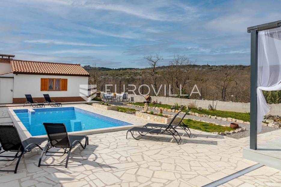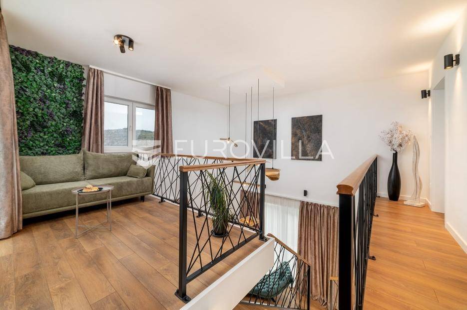 Otkrijte privatnu oazu luksuza u Velikom Bročancu, Klis, samo 20 km od Splita. Ova moderna vila, izgrađena 2021., idealna je za bijeg od užurbanosti, okružena netaknutom prirodom. Uživajte u potpunoj privatnosti i tišini. Potpuno opremljena, nudi suvremeni komfor i prirodno okruženje, savršena za opuštanje i odmor iz snova.Vila se prostire na 153 m2, s okućnicom od 834 m2. Tri spavaće sobe i tri kupaonice pružaju udobnost. Višeetažna struktura s galerijom dodaje prozračnost, a orijentacija na sve četiri strane garantira obilje prirodnog svjetla. Vanjski prostor je idealan za opuštanje. Veliki grijani bazen sa sunčalištem, terasa s vanjskim kominom i stolom za blagovanje na otvorenom savršeni su za druženja. Uz balkon, loggiu i uređen vrt, uživanje je zajamčeno.Ova izvanredna nekretnina predstavlja izvrsnu investiciju ili obiteljsko utočište. Lokacija blizu Splita, uz istovremenu izoliranost i mir, čini je iznimno poželjnom. Doživite luksuzan život u ovoj jedinstvenoj vili u srcu Dalmatinske zagore.Za sve ostale informacije na upit.