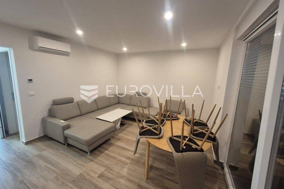 Na prodaju je moderan stan u novogradnji, smješten na drugom katu manje stambene zgrade s ukupno tri stana.Stan površine 74,53 m² (reducirane površine 65,78 m²) sastoji se od uulaznog hodnika s garderobom, kuhinje s blagovaonicom i dnevnim boravkom, dvije spavaće sobe, kupaonice te natkrivenog balkona s prekrasnim pogledom na more.Nekretnina je u potpunosti namještena i odmah useljiva, a za dodatnu udobnost tu su dva klima uređaja i podno grijanje u dnevnom boravku, hodniku i kupaonici - savršeno za ugodan boravak tijekom cijele godine.Stan se nalazi u mirnom i uređenom kvartu, bez buke i gužve, idealnom za obiteljski život ili opuštajući odmor. Samo pet minuta vožnje dijeli ga od prekrasnih plaža i svih potrebnih sadržaja.U cijenu su uključena dva parkirna mjesta.Za više informacija slobodno nas kontaktirajte.