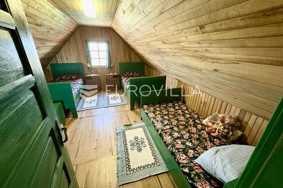 Sveti Juraj na Bregu, Mali Mihaljevec, na zemljištu ukupne površine 766 m2 nalazi se etno kuća, okružena prekrasnom prirodom, idealna za bijeg od gradskih gužvi i svakodnevnog užurbanog života.Kuća se sastoji od dvije etaže. U prizemlju se nalazi predprostor, kuhinja s blagovaonicom, spavaća soba i kupaonica s wc-om. Na prvom katu nalazi se predprostor, dvije spavaće sobe i kupaonica s wc-om.Kuća je opremljena restauriranim namještajem od punog drva.Sustav grijanja je na plin, a u kuhinji se nalazi peć, pa je moguće i grijanje na drva.Kuća ima priključak struje, a voda se koristi iz zdenca. Moguće je izvesti i ostale priključke, jer se kuća nalazi u zoni građenja i priključci prolaze ulicom.Uz kuću se nalazi djelomično dovršen bio bazen i postavljena finska sauna.Iza zemljišta s kućom, nalazi se livada površine 706 m2 i voćnjak površine 1497 m2, koji se nalaze u zoni građenja, što predstavlja veliki potencijal za investiciju za razvoj turizma.Etno kuća prvi put je sagrađena 1854. godine u Turopolju.U krugu od 20 km nalaze se poznate Terme Sveti Martin, Glamping Resort Halicanum, vinarije, Accredo Centar- adrenalinski park, Vidikovac Mađerkin breg i poznati restorani Terbotz i Kneja.Za sva dodatna pitanja, stojimo Vam na raspolaganju.
