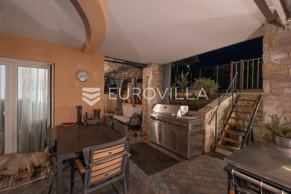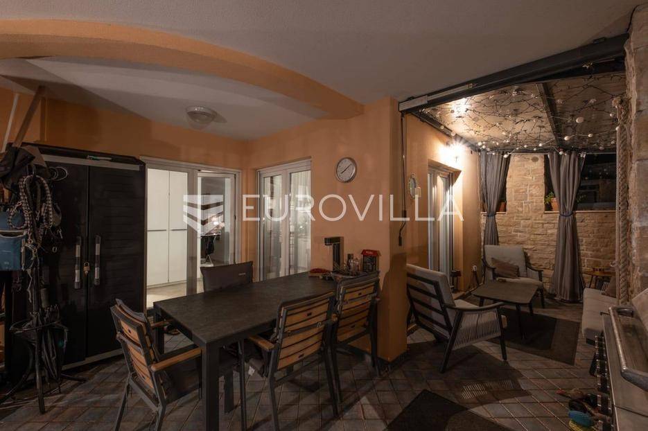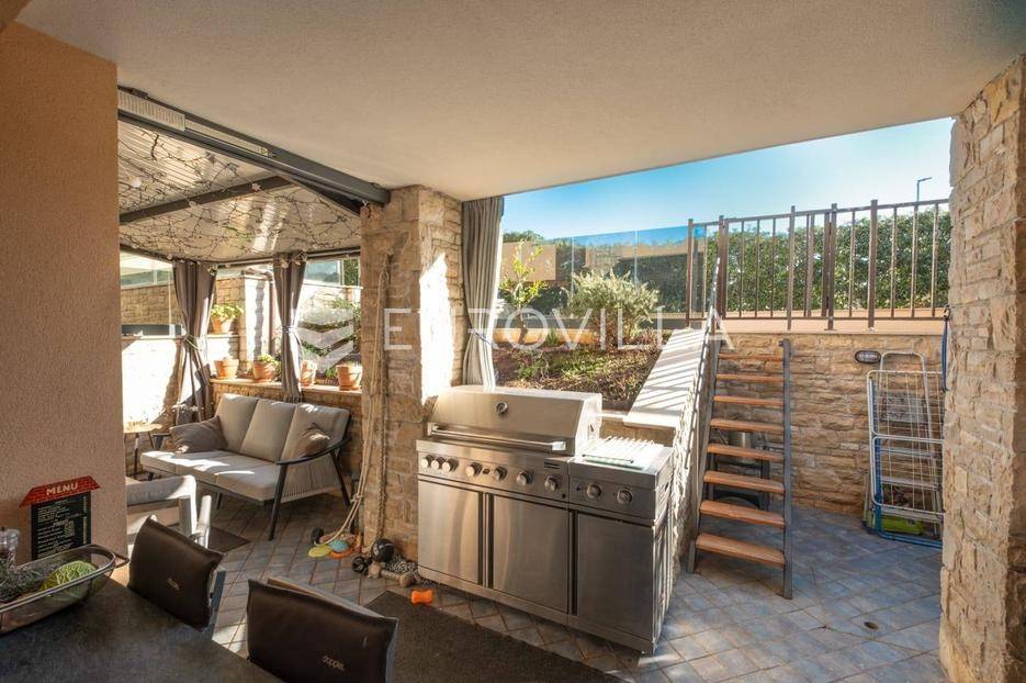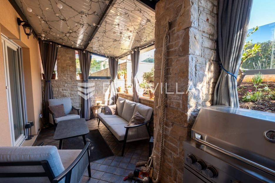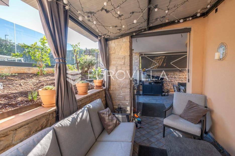 Na prodaju je izuzetno atraktivna nekretnina smještena u suterenu manje stambene zgrade s tek tri stambene jedinice, na mirnoj i vrlo poželjnoj lokaciji u središnjem dijelu Medulina. Osim glavnog ulaza iz zgrade, stan sadrži i sporedni ulaz koji vodi direktno u vlastiti vrt.Udaljen svega dvjestotinjak metara od mora, ovaj stan predstavlja savršen spoj udobnosti, funkcionalnosti i privatnosti, što ga čini idealnim izborom za cjelogodišnje stanovanje, turistički najam ili kao investiciju za odmor.U 62 m2 sastoji se od ulaznog hodnika, prostranog dnevnog boravka povezanog s kuhinjom i blagovaonicom, dvije spavaće sobe, kupaonice, natkrivene terasei vrta. Posebnu vrijednost daje raspored prostorija koji je iznimno praktičan život, kao i velika staklena stijena prema terasi koja unosi obilje prirodne svjetlosti. Uređeni i ograđeni vrt jedan je od najvećih aduta ove nekretnine. Pruža potpunu privatnost i idealno mjesto za opuštanje na otvorenom, dok diskretna ambijentalna rasvjeta stvara ugodnu večernju atmosferu.
