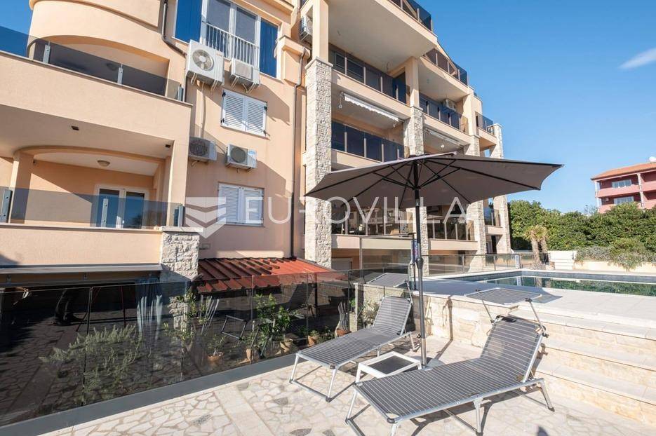 Iz vrta se pruža izravan pristup zajedničkom bazenu i sunčalištu, što predstavlja rijetkost na tržištu i dodatnu vrijednost koja ovu nekretninu čini još posebnijom.Stan se prodaje potpuno opremljen i namješten. Opremljen je klima uređajem i nordijskim radijatorima. Dostupan je i optički priključak za brzi internet, što stan čini idealnim za rad na daljinu.Nekretnini pripada i vlastito parkirno mjesto, smješteno odmah uz objekt i uključeno u cijenu. Cijeli kompleks odlikuje se uređenim okolišem, niskom gustoćom izgrađenosti i kvalitetnom infrastrukturom, a u neposrednoj blizini nalaze se svi potrebni sadržaji za svakodnevni život - trgovine, restorani, ljekarna, marina, šetnice i brojne plaže.Lokacija nudi savršen balans između privatnosti i dostupnosti. Smješten u mirnoj ulici bez buke i prometa, stan ipak ostaje na samo nekoliko koraka od obale i svih atraktivnih sadržaja koje nudi Medulin, jedno od najtraženijih i najpoželjnijih turističkih odredišta u Istri. Ova nekretnina doista spaja sve elemente potrebne za ugodan život, odmor ili sigurnu investiciju na iznimnoj lokaciji uz more.Za više informacija slobodno nas kontaktirajte.