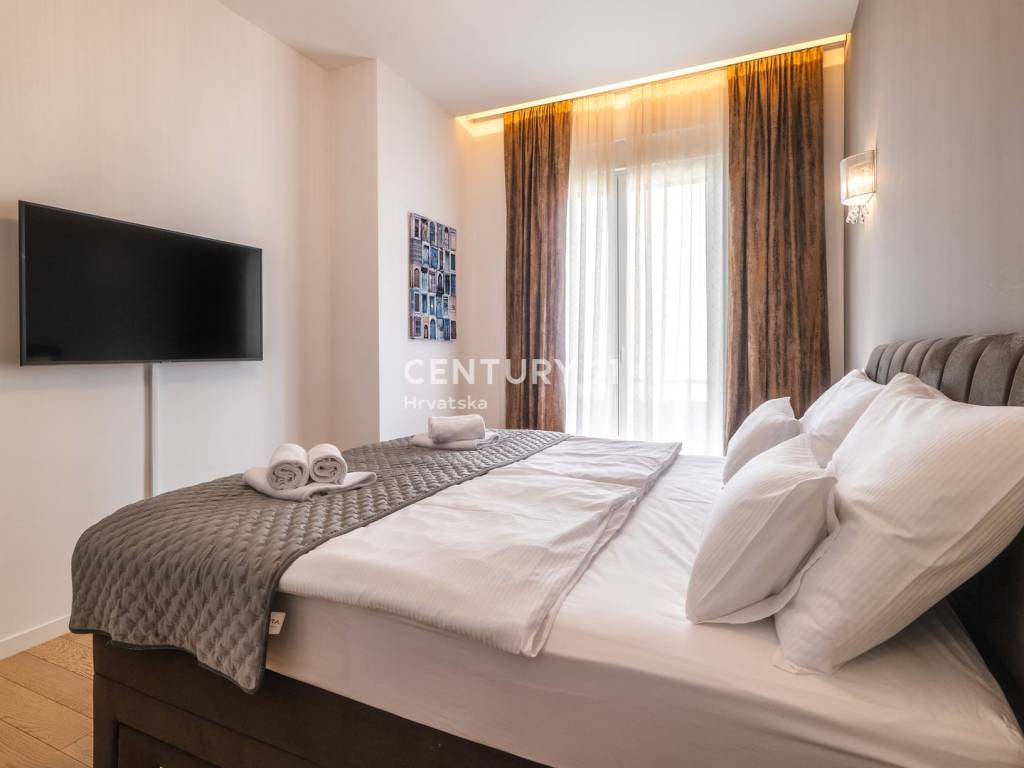 Posredujemo u prodaji luksuznog stana površine cca 90 m2, potpuno renoviranog i kompletno namještenog i opremljenog, koji se nalazi u održavanoj zgradi, 1 red do mora.