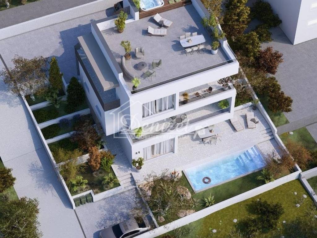 Apartment 1 – living area 83.71 m² + terrace 30.13 m² + pool 19.11 m² + yard + 2 parking spaces.