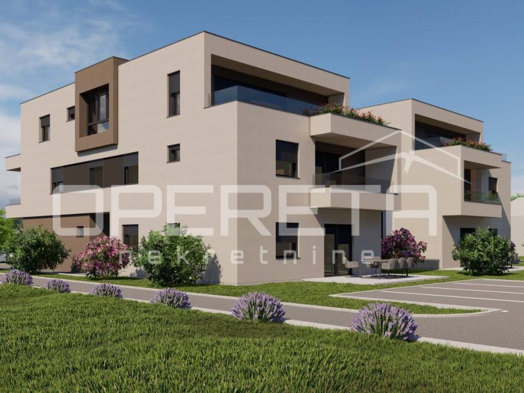 Lokacija nekretnine je fantastična, u mirnoj ulici s obiteljskim kućama u blizini ostalih sadržaja (hipermarket, autobusna stanica, sportsko-rekreacijska infrastruktura i sl.). Zona je planirana za uspostavu novog obiteljskog kvarta s manjim stambenim zgradama. Očekivani rok useljenja je proljeće 2027.